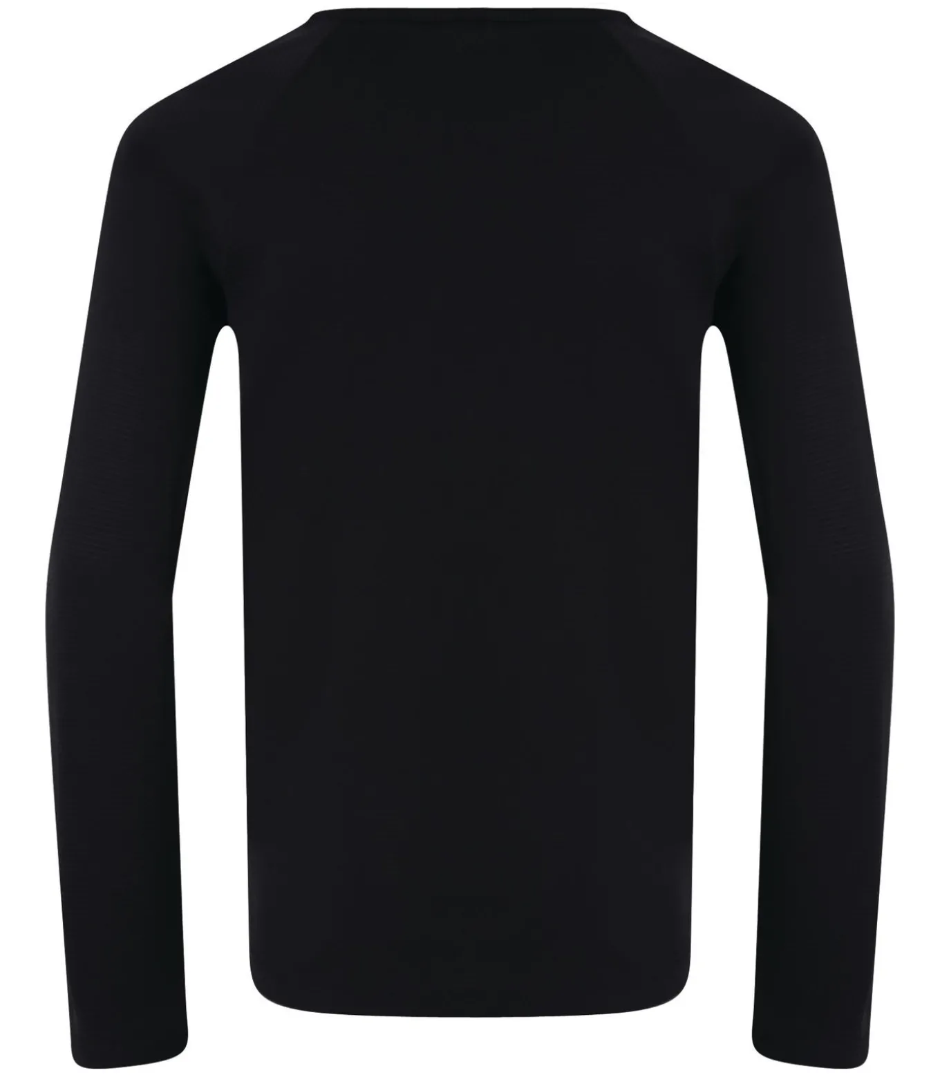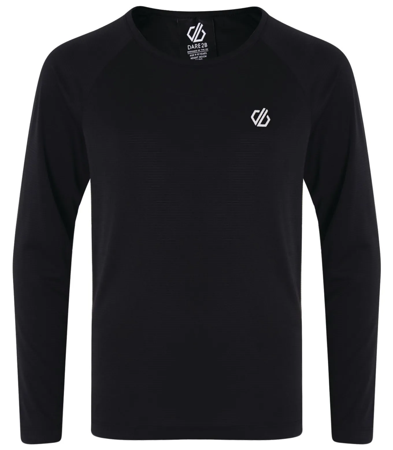 Dare 2B’s ELATE III basislaag is een zwarte pullover met geborsteld gerecycleerd polyester materiaal en een eenvoudig ontwerp waarin het merklogo is verwerkt. Het heeft langemuren, een crew neck hals, een pull over/pull on sluitingsmechanisme en verschilt door zijn lichte gewicht, antibacteriële eigenschappen, vochtafvoerendheid, geurcontrole, sneldroogheid, thermische capaciteit, chemie– en gifvrijheid. De schuifinhoud is aan zowel de bovenkant als de bodems toegepast. Dit kledingstuk past bij kinderen tussen 3 en 13 jaar: voor kinderen van 3 tot 4 jaar is het grootte 22,5 in., voor kinderen van 5 tot 6 jaar 24 in., voor kinderen van 7 tot 8 jaar 26 in., voor kinderen van 9 tot 10 jaar 28,5 in. en voor kinderen van 11 tot 13 jaar is het grootte 31 in.
