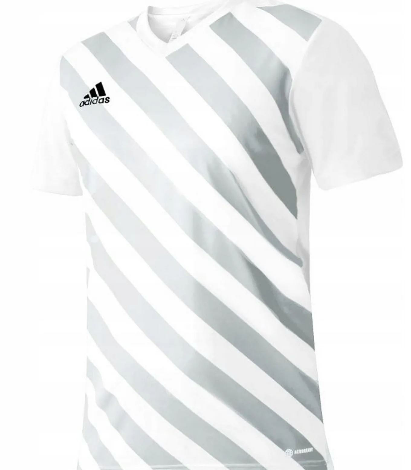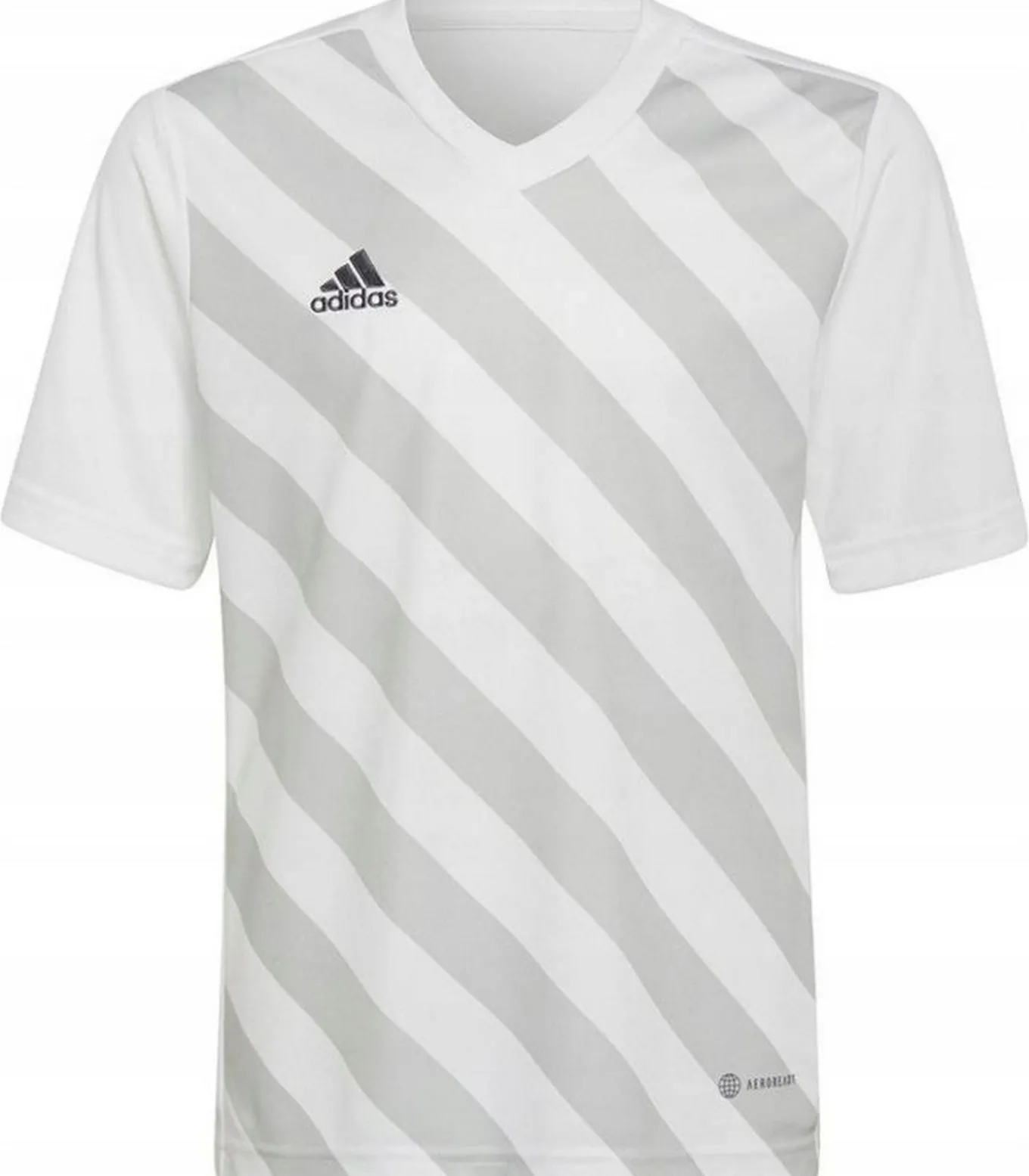 Adidas ENTRADA 22–witte jersey gemaakt van 100% hergebruikt polyester. Dit ontwerp kenmerkt zich door een contraststreep, diagonale strepen en het logo en tekst op de voorzijde. De mouwen zijn kort en er is een V–hals. Deze jersey wordt versterkt met Aeroready stoftechnologie, waardoor hij geschikt is om te dragen tijdens sportieve activiteiten. Het pasje van deze jersey past bij 8 jaar 25 inch, 10 jaar 28 inch en 6 jaar 24 inch.