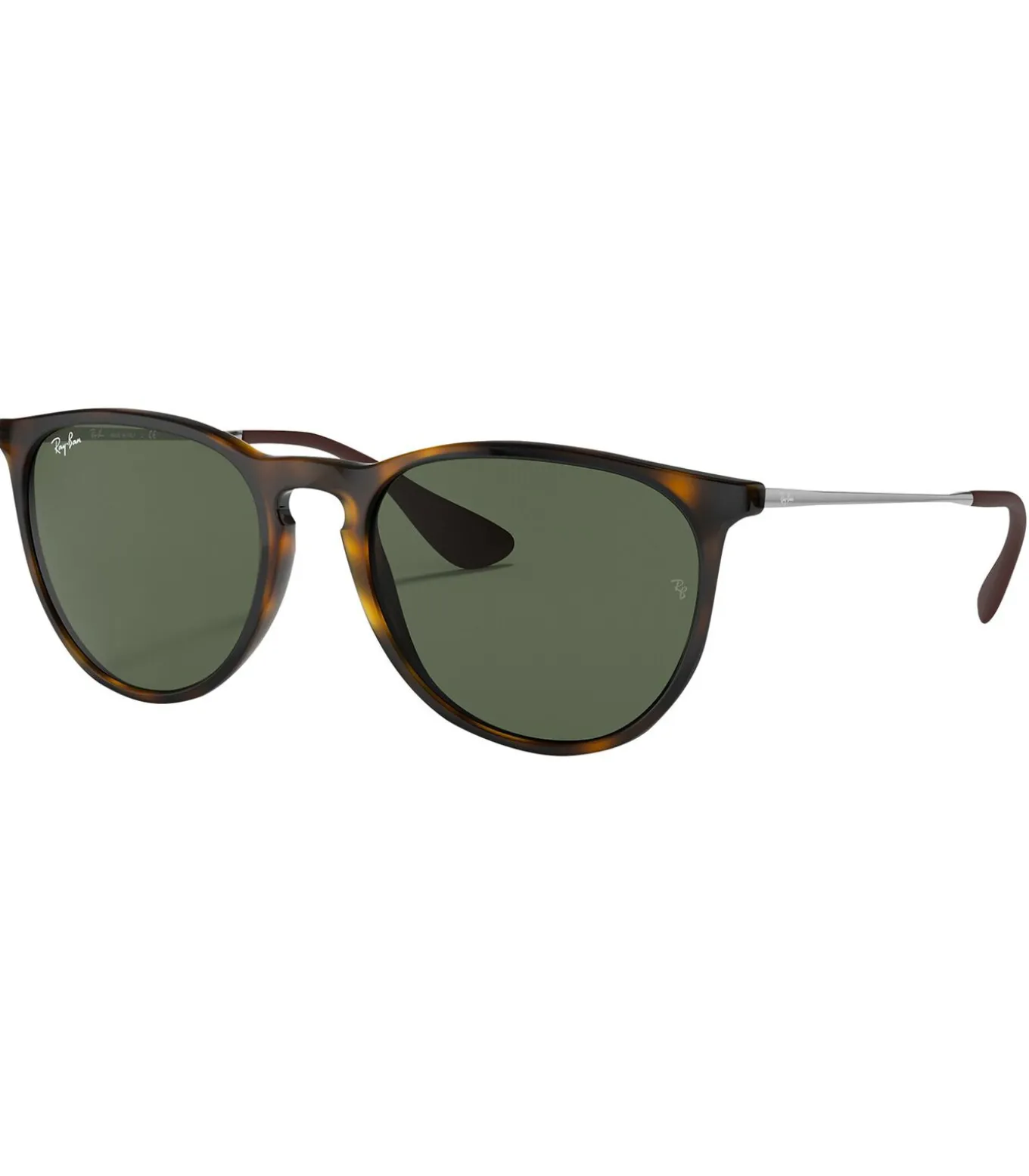 De Erika Classic–zonnebril van Ray–Ban wordt geleverd in de kleur licht Havana/donkergroen, met branding op lens en arm. Deze zonnebril heeft een Phantos–vorm, een gradiëntlens en een harde koffer.