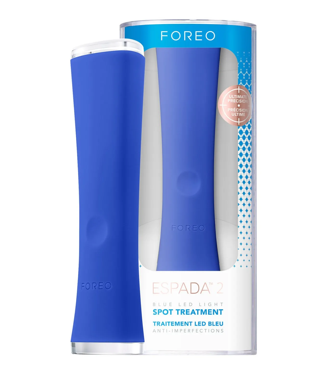 MEER KRACHT VOOR SNELLERE RESULTATENDe nieuwe en verbeterde ESPADA™ 2, met de dubbele kracht van blauw LED–licht en T–Sonic™–pulsaties, werkt snel en effectief om bestaande onzuiverheden, puistjes en ontstekingen te verwijderen – zonder de huid uit te drogen. Het is bewezen dat het de huid sneller en efficiënter dan ooit behandelt en geneest. Dit elegante & ultra–hygiënische siliconen apparaat is ontworpen voor eenvoudige, niet–invasieve behandeling van de huid met onzuiverheden, het verwijderen van bestaande puistjes, onzuiverheden en ontstekingen zonder overmatig uitdrogen, het reguleren van de talgproductie en het minimaliseren van vergrote poriën om nieuwe puistjes te voorkomen.Blauw LED–licht is een niet–invasieve behandeling die 415 nm golflengte LED licht gebruikt om de huid binnen te dringen, de onzuiverheden–veroorzakende bacteriën bij de bron te doden, de huidige ontsteking te verlichten en de vorming van nieuwe puistjes te voorkomen. Tegelijkertijd stimuleren T–Sonic™ pulsaties de microcirculatie, wat de celvernieuwing van de huid bevordert om puistjes te genezen en littekens van eerdere onzuiverheden op de huid te verwijderen, terwijl de absorptie van spot treatment producten, zoals ESPADA™ BHA+PHA Blemish Solution gel, wordt verhoogd.Richt, behandel & beëindig in slechts 30 seconden en geniet van een langdurig gezonde & stralende huid met minder onzuiverheden.