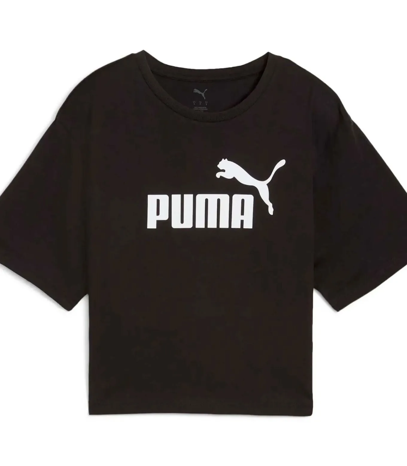 Kleur: Puma Black. Samenstelling: Buitenkant: 100% katoen; Kraag: 70% katoen, 30% polyester. Mouwen: Kort. Halslijn: Ronde hals. Lengte: Cropped. Pasvorm: Relaxed. Details: Cropped jersey T–shirt met verlaagde schouders en rubberen PUMA No. 1–logoprint, perfect om te combineren met kleding met een hoge taille. Duurzaamheid: Gemaakt van minimaal 20% gerecycled katoen. Gebruik: Ideaal voor een casual en relaxte look, perfect voor vrije tijd en het dagelijks leven.