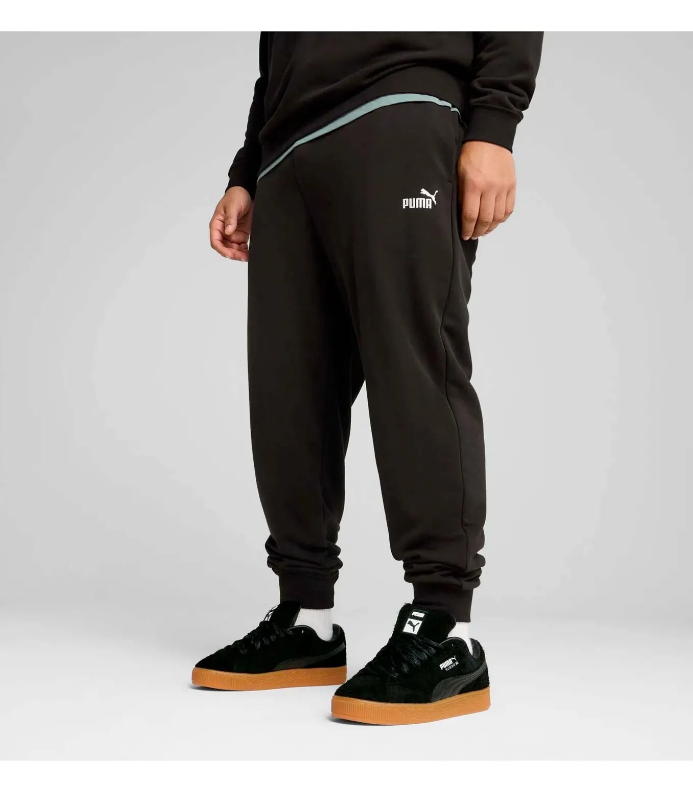 Kleur: Puma Black. Samenstelling: Buitenkant: 68% katoen, 32% polyester; Voering bovenzak: 100% katoen; Kern: 97% katoen, 3% elastaan. Lengte: Regular. Pasvorm: Regular. Sluiting: Trekkoord aan de binnenkant van de taille. Details: French terry broek met middelhoge taille en elastische tailleband, steekzakken, geribbelde manchetten, geborduurd PUMA No. 1–logo. Duurzaamheid: Gemaakt met minimaal 50% gerecycled materiaal. Gebruik: Ideaal voor vrije tijd, training en casual dagen met optimaal comfort.