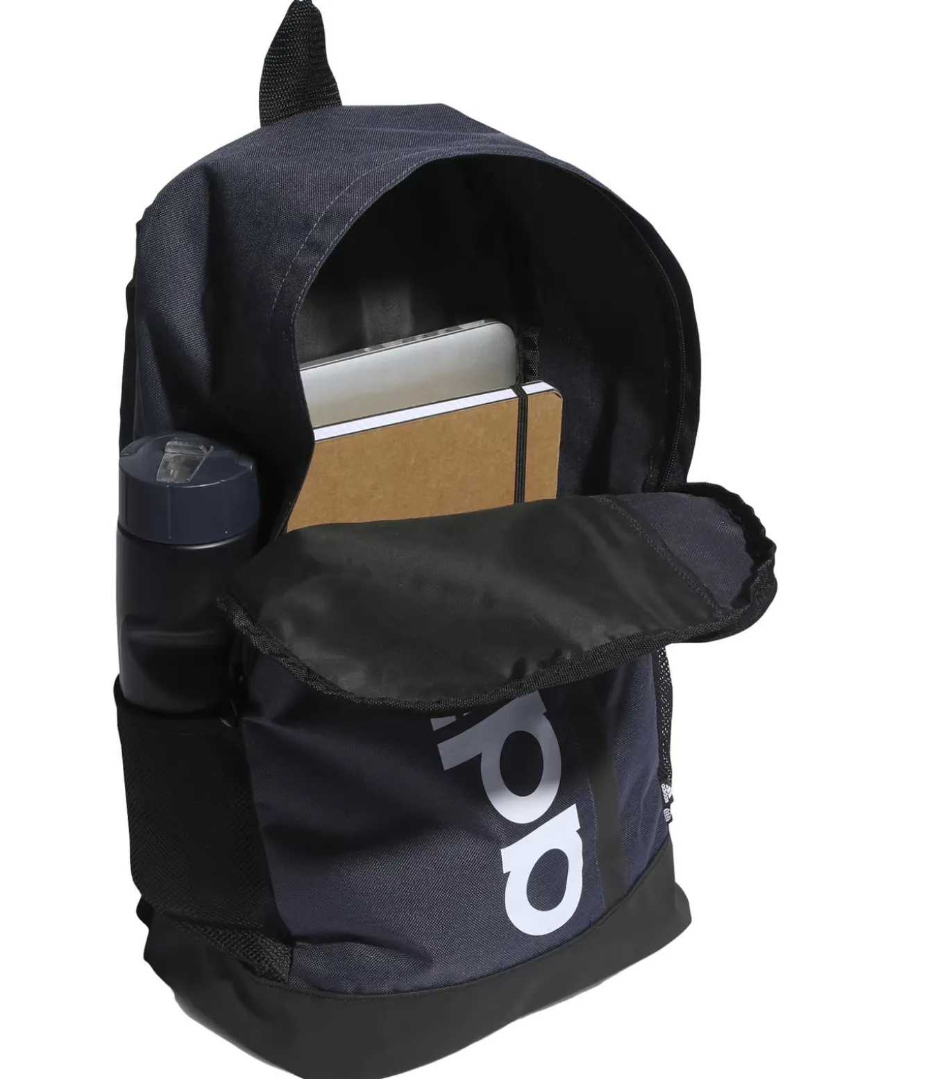 Adidas Essentials Linear marineblauw rugzak is een duurzaam ontwerpte en milieu–vriendelijke schooltas. Deze tas heeft een inhoud van 22,5 liter en meet 46 cm in hoogte, 26,5 cm in breedte en 14 cm in lengte. Het buitenmateriaal, de stof en het vulling bestaat volledig uit recycleerd polyester. De tas heeft een hoofdvat met een rit en is voorzien van duurzaam stoftechnologie. Het ontwerp bevat het Adidas logo.