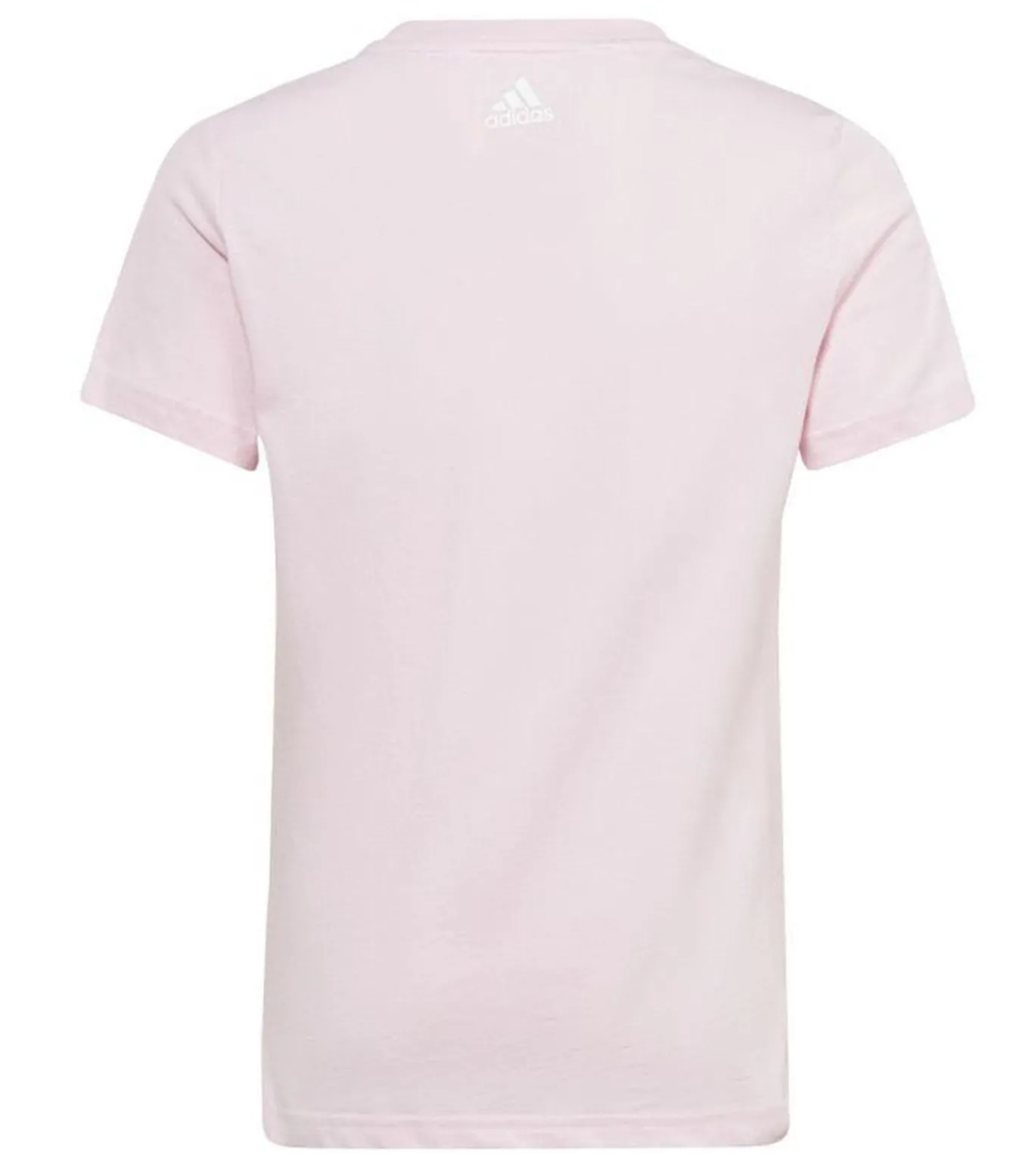 Adidas Essentials Linear T–Shirt, roze, 100% katoen. Deze T–shirt is gemaakt door merk Adidas en deel uit van hun Essentials Line. Het ontwerp van de T–shirt is eenvoudig met het logo van Adidas op de voorzijde. De hals is crew neck en de mouwen zijn kort. De T–shirt is vervaardigd met duurzaam stoftechnologie en geschikt voor slank personen. De maat is 34 in, ofwel 14 jaar.