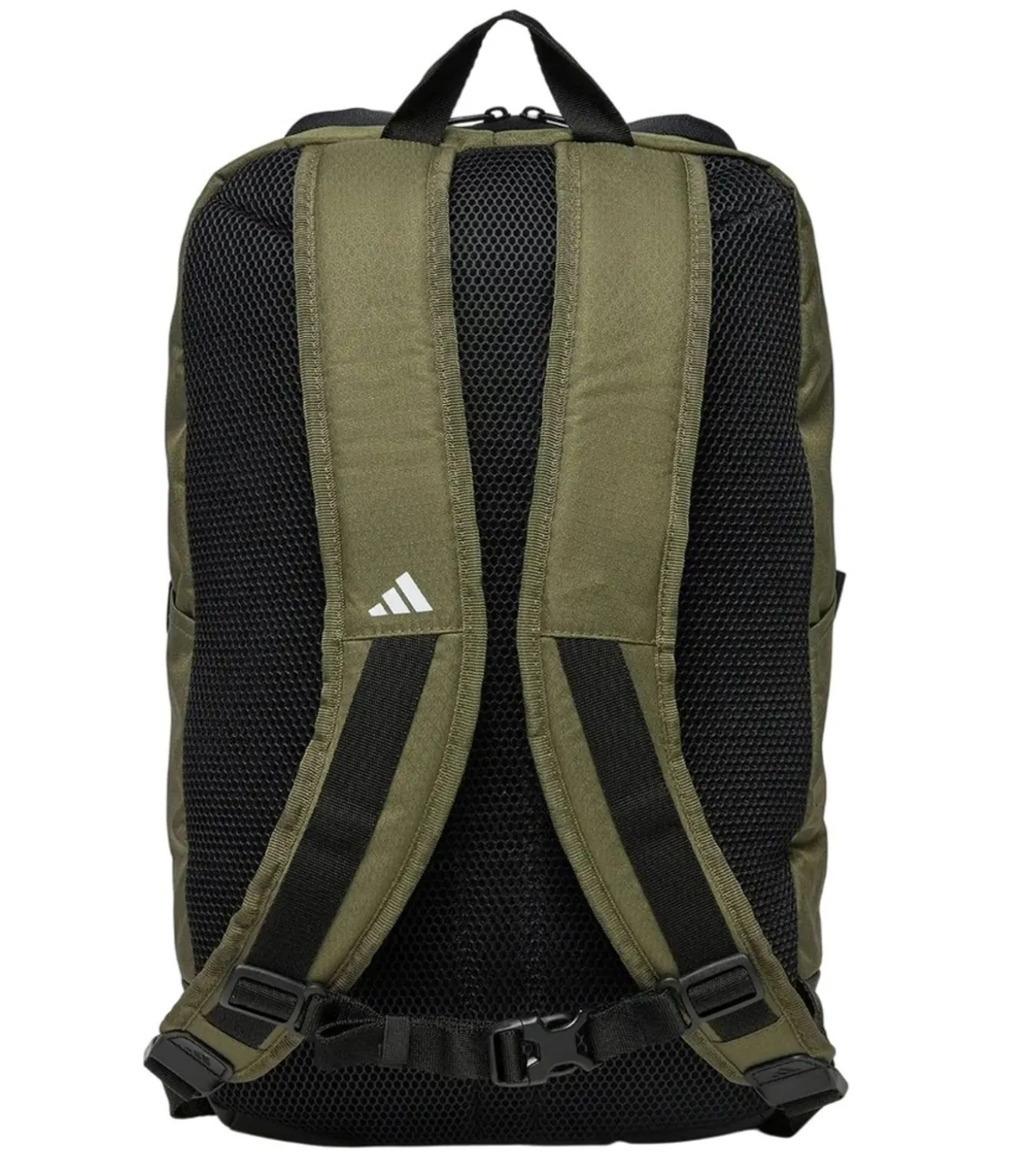 Adidas Essentials groene zakdoek gemaakt van 100% hergebruikt polyester met ripsstopstof. Deze zakdoek meet 46 cm hoog en 30 cm breed met een inhoud van 24 liter en een diepte van 16 cm. De zakdoek bevat een voorzak, rits, 2 steekzakken en zijzak. Het hoofdcompartiment is verstelbaar, evenals de borst– en schouderband, samen met een handvat, gecoate onderkant, gewatteerde rug van gas, zijdelingse compressieriemen en Aeroready & duurzaam stoftechnologie. Het ontwerp bevat het Adidas logo en streepjesdetails. De zakdoek wordt vastgezet met een ritssluiting.