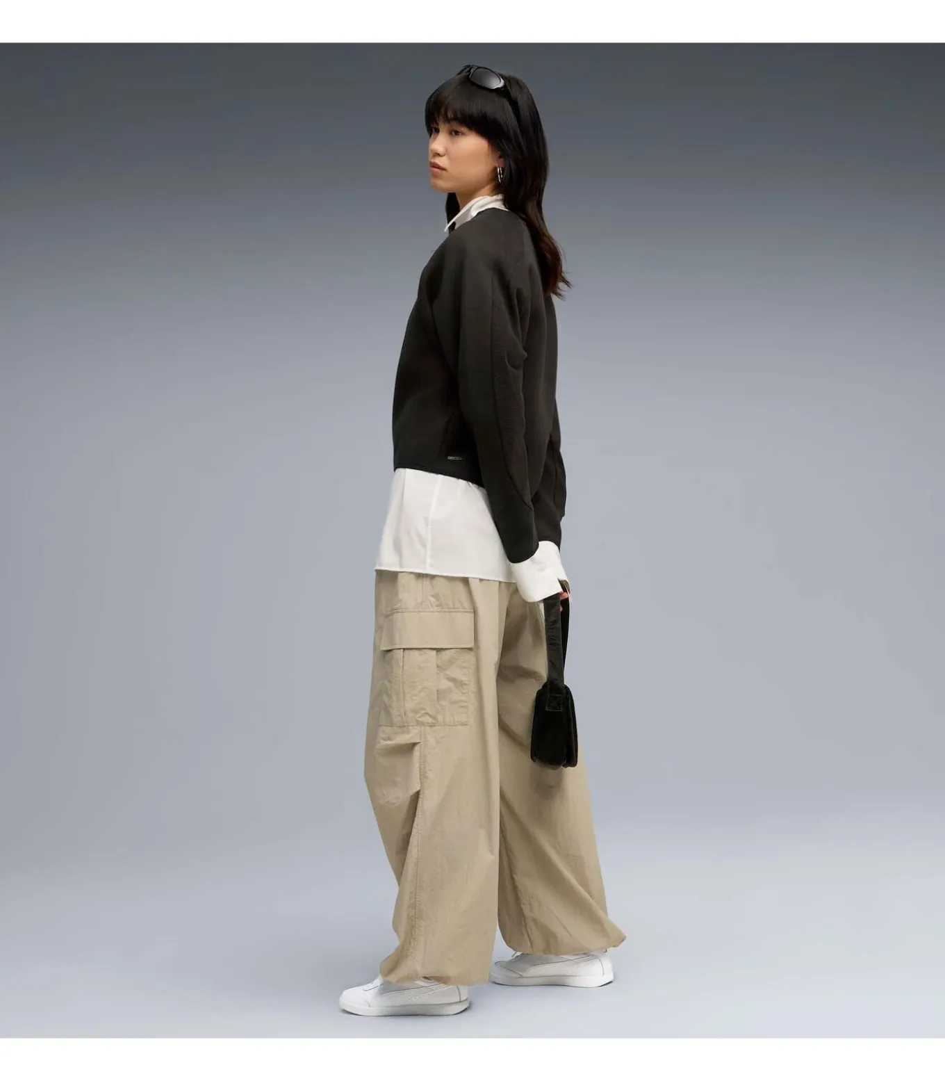 Kleur: PUMA Black. Samenstelling: Buitenkant: 77% katoen, 23% polyester; inzetstukken: 80% katoen, 20% polyester; kern: 97% katoen, 3% elastaan. Mouwen: Lange raglan. Halslijn: Ronde hals. Lengte: Kort. Pasvorm: Comfort. Details: Dames sweatshirt met ronde hals met dryCELL–technologie voor vochtregulatie, zijzakken waarvan één met rits, raglanmouwen en Evostripe–lijn met iconische Formstrip voor maximale bewegingsvrijheid. Duurzaamheid: Gemaakt met minimaal 20% gerecycled materiaal. Gebruik: Ideaal voor een sportieve en functionele look, perfect voor lichte trainingen en dagelijkse activiteiten.