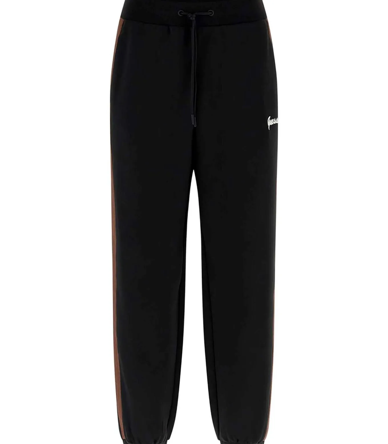 Kleur: Jet Black Samenstelling: 86% polyester, 8% viscose/rayon, 6% elastaan Pasvorm: Normaal Taille: Geribbelde elastische tailleband met trekkoord Details: Joggingbroek van stretchviscosemix met contrasterende zijbanden, logo–opschrift aan de zijkant en elastische manchetten Duurzaamheid: Dit kledingstuk is gemaakt met gerecyclede componenten Gebruik: Perfect voor vrije tijd en ontspanningsmomenten zonder in te leveren op stijl