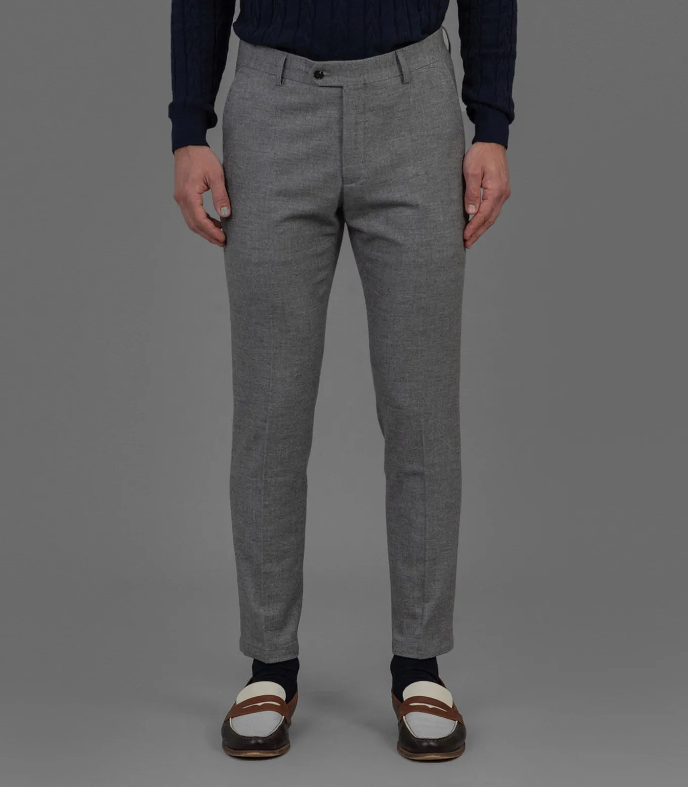 Pierre Flannel Broek: verfijnd en veelzijdig, de Pierre Flannel Broek staat voor tijdloze stijl met een uitgesproken elegant silhouet. Vakkundig vervaardigd uit een hoogwaardige mix van 56% polyester, 24% rayon, 18% wol en 2% spandex, biedt hij een zacht maar gestructureerd gevoel – een balans tussen comfort en verfijning.