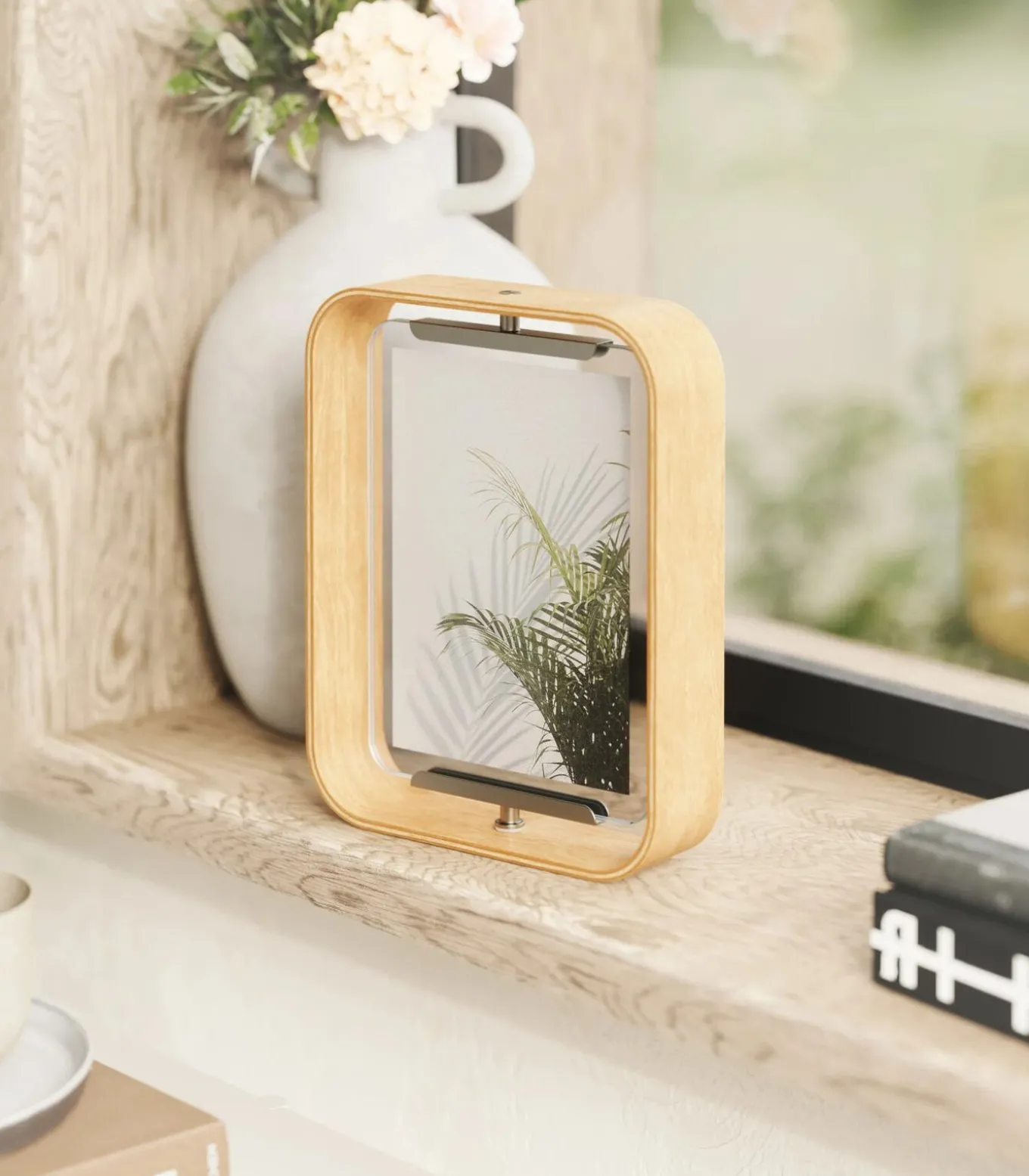 Maak kennis met het Bellwood frame – de perfecte oplossing om een beetje natuurlijke charme toe te voegen aan elke leefruimte. Deze veelzijdige dubbelzijdige lijst is gemaakt van duurzaam beukenhout, waardoor het een moderne en milieuvriendelijke keuze is. Het heeft instelbare oriëntatieopties waarmee je je foto’s staand of liggend kunt weergeven. Dankzij het unieke ontwerp kun je de afbeelding ook draaien om het uiterlijk van de ruimte te variëren. Bellwood is geschikt voor een afbeelding van 5×7 of kan een afbeelding van 4×6 laten zweven.