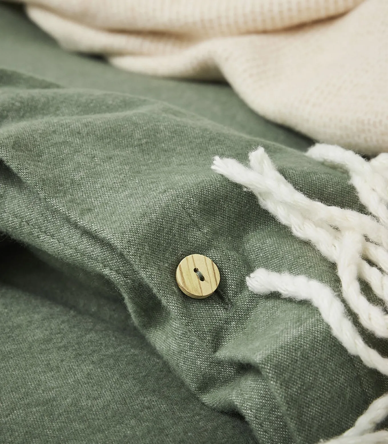 Met Frisson lijkt de tijd stil te staan! Frisson is de moderne interpretatie van flanel, hier bewerkt met een chambray katoen. Het is perfect om lekker in weg te kruipen dankzij de fijne pluizige look. Bij deze techniek worden gekleurde en ecru vezels gemengd tijdens het weven, waardoor het ontwerp een gemêleerd effect krijgt. Flanel is een stof die bekend staat om zijn thermische eigenschappen, zachtheid en comfort en die we opnieuw hebben vormgegeven in een stijl van topkwaliteit. Door de rustgevende, kalmerende kleuren past Frisson gemakkelijk in elke interieurstijl. Dit model is verkrijgbaar in een reeks rustgevende kleuren en nodigt uit tot onvergetelijke gezellige avonden in bed.