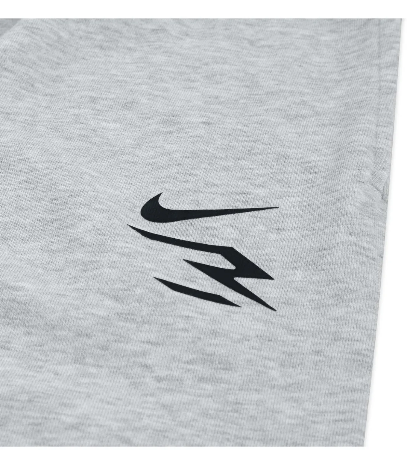 Kleur: Grey Heather Samenstelling: 60% katoen, 40% polyester Pasvorm: Normaal Sluiting: Rits Details: Hoodie met ritssluiting aan de voorkant; kangoeroezakken; broek met elastische tailleband en elastische pijpen; bedrukte Nike 3Brand–logo’s Gebruik: Een complete en comfortabele set, ideaal voor dynamische dagen en momenten van ontspanning met een sportieve en moderne look