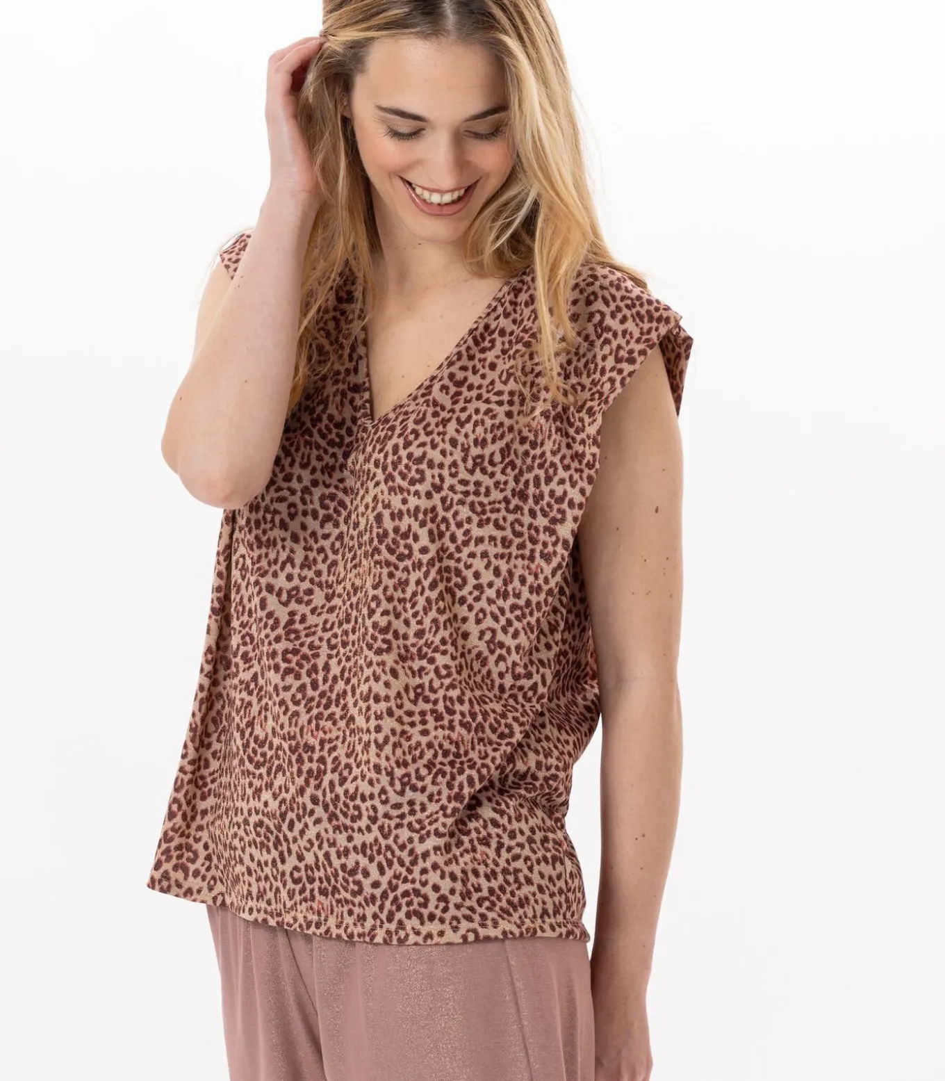 Hoe draag je het FESTIVAL 930 luipaardprint mouwloos T–shirtHet mouwloze FESTIVAL 930 T–shirt is een must–have dit seizoen.