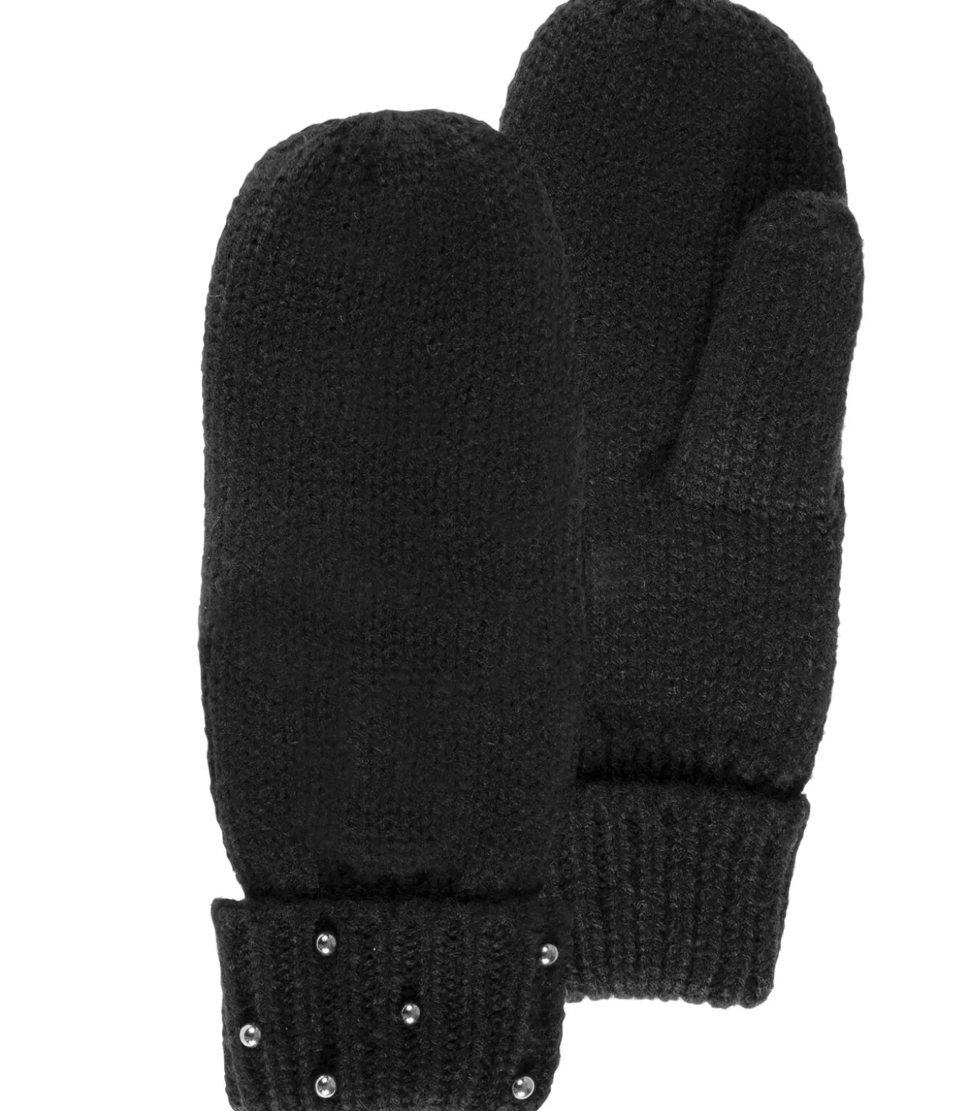 Gebreide dameswanten met metalen kralen ingelegd op de manchet, gevoerd met fleece.