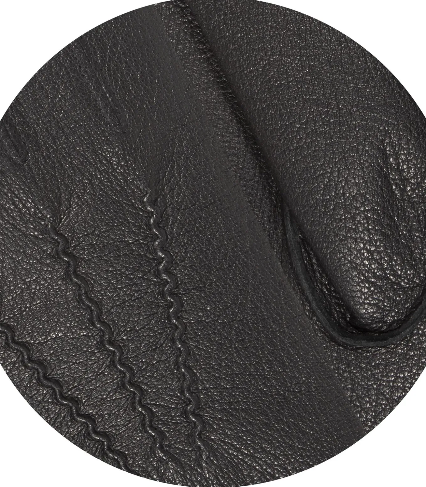Deze herenhandschoenen zijn gemaakt van volnerf geitenleer, het fijnste deel van het leer dat zijn oorspronkelijke oppervlak heeft behouden: de nerf. Deze handschoenen houden je handen warm dankzij de imitatievoering van microbont. De drie baguette stiksels aan de buitenkant en de imitatie hertenleer afwerking geven deze handschoenen een karakter dat zowel elegant als authentiek is.