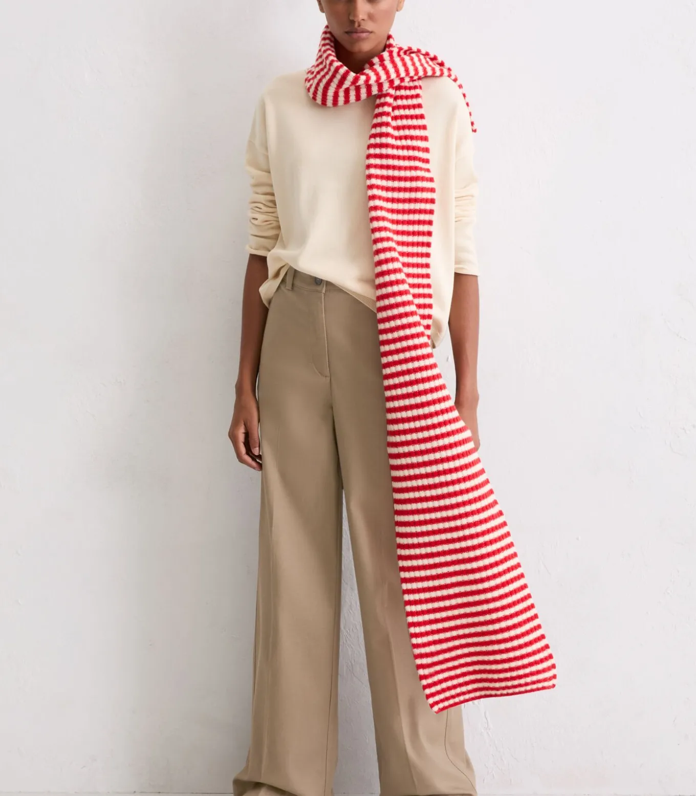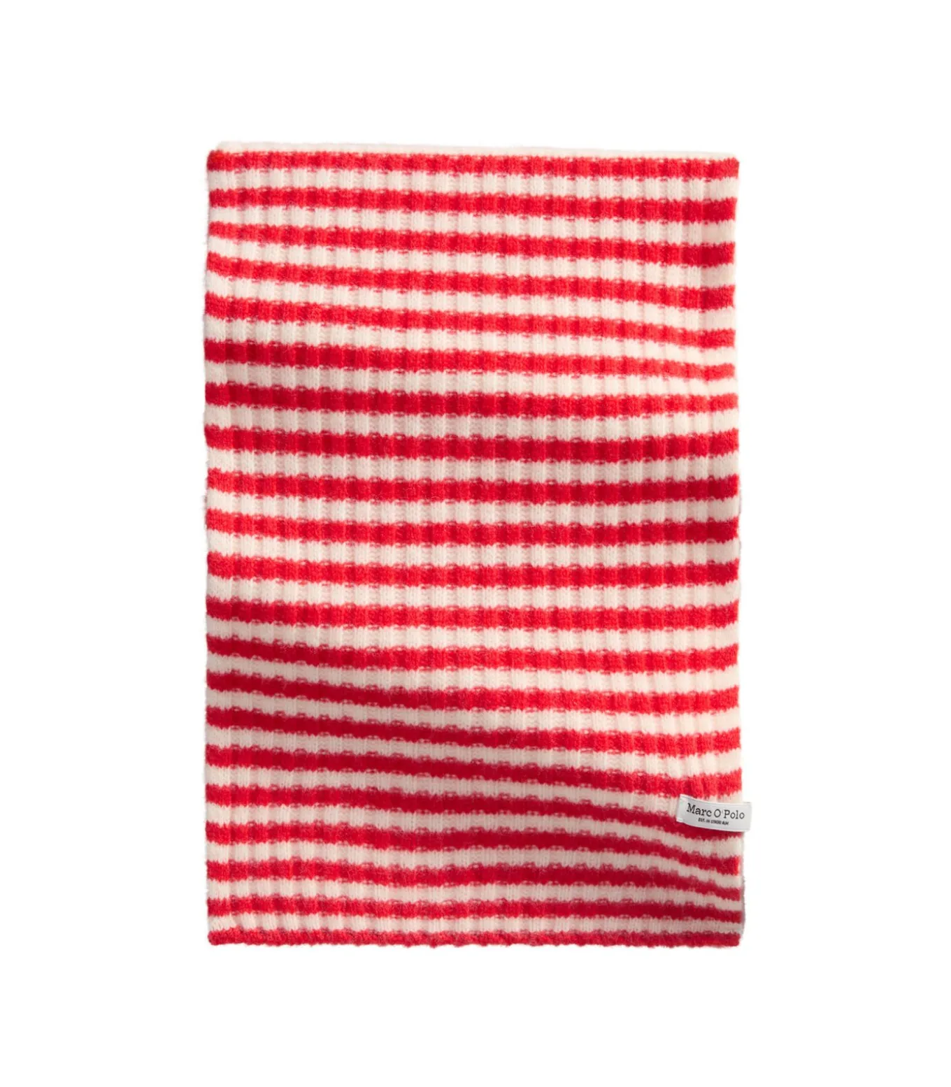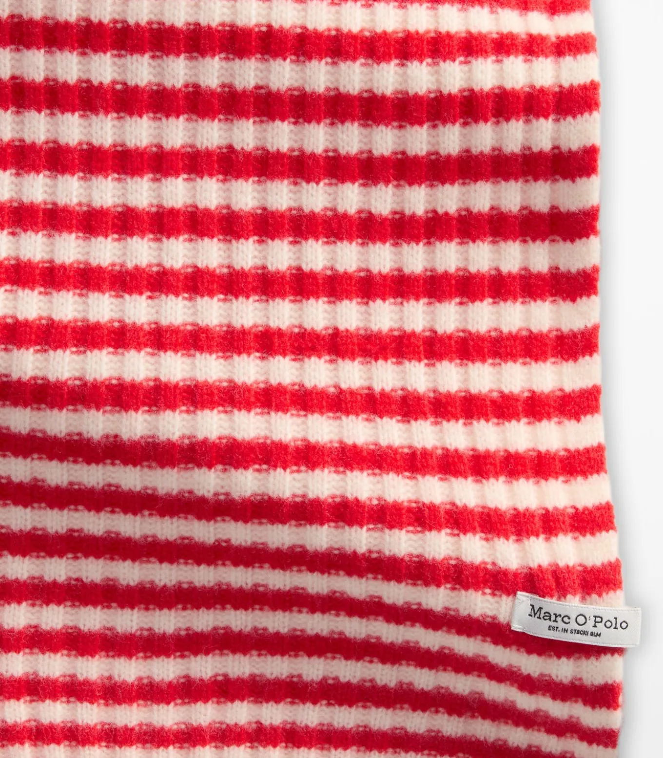 Regen, vorst, wind of gewoon als modeaccessoire – deze supergezellige, stijlvolle gebreide sjaal houdt je warm en chic. De compacte gebreide stijl is gemaakt van een exclusieve scheerwolmix en heeft een klassiek gestreept patroon. Tip: draag als set met de bijpassende muts.