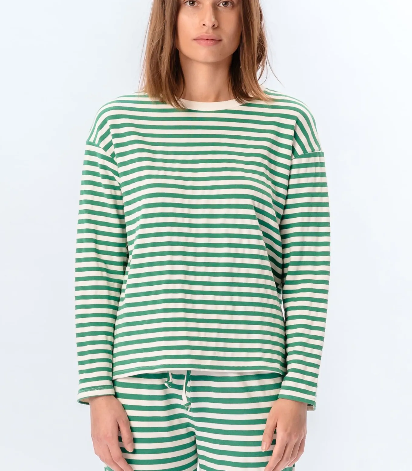 Het gestreepte overhemd in groen is de perfecte keuze voor de vrouw die stijl en comfort wil combineren. Dit overhemd voor dames uit onze collectie heeft een moderne pasvorm die gemakkelijk formeel of informeel te stylen is, afhankelijk van de gelegenheid. De stijlvolle groene tint benadrukt de fijne details van de horizontale strepen, waardoor het overhemd ideaal is voor zowel dagelijks gebruik als formele gelegenheden. De materiaalsamenstelling garandeert een hoge kwaliteit met een comfortabele mix van polyester, katoen, viscose en elastaan, wat zorgt voor optimale bewegingsvrijheid. Combineer het overhemd met je favoriete jeans of een elegante rok voor een onovertroffen look.