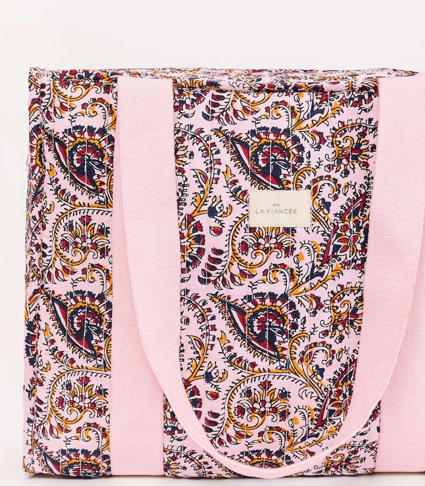 Gewatteerde bedrukte katoenen shopper van biologisch katoen, ideaal voor dagelijks gebruik dankzij het royale formaat en de bedrukte stijl. Praktisch en elegant, gemakkelijk over de schouder te dragen dankzij de lange handgrepen van katoen grosgrain. Het perfecte accessoire om al uw spullen deze zomer mee te nemen. Productdetails: gewatteerde shopper. Bovenkant met ritssluiting. 1 binnenvak. Handgreplengte vanaf de basis: 126 cm. Afmetingen: 35 x 29 x 15 cm.