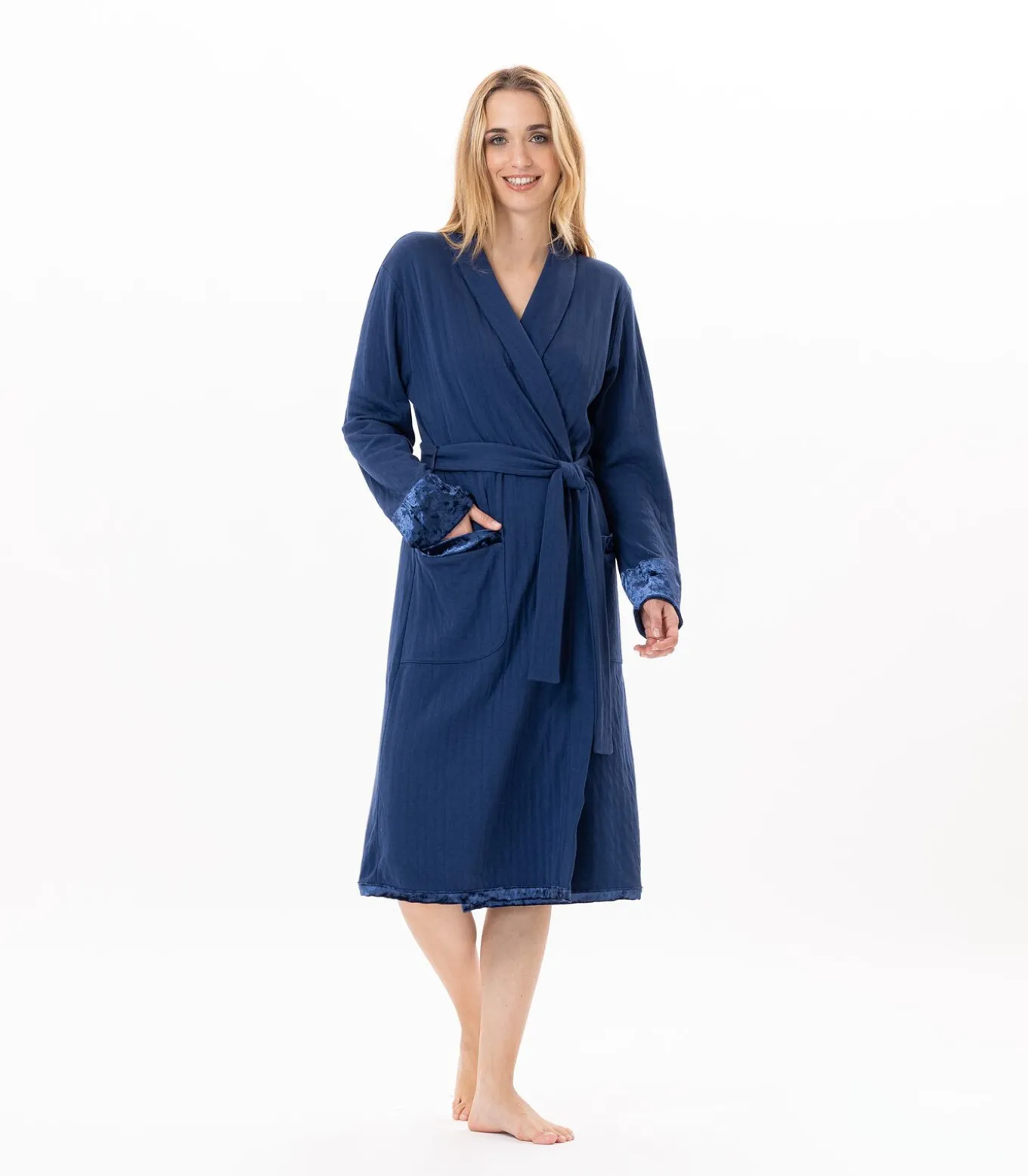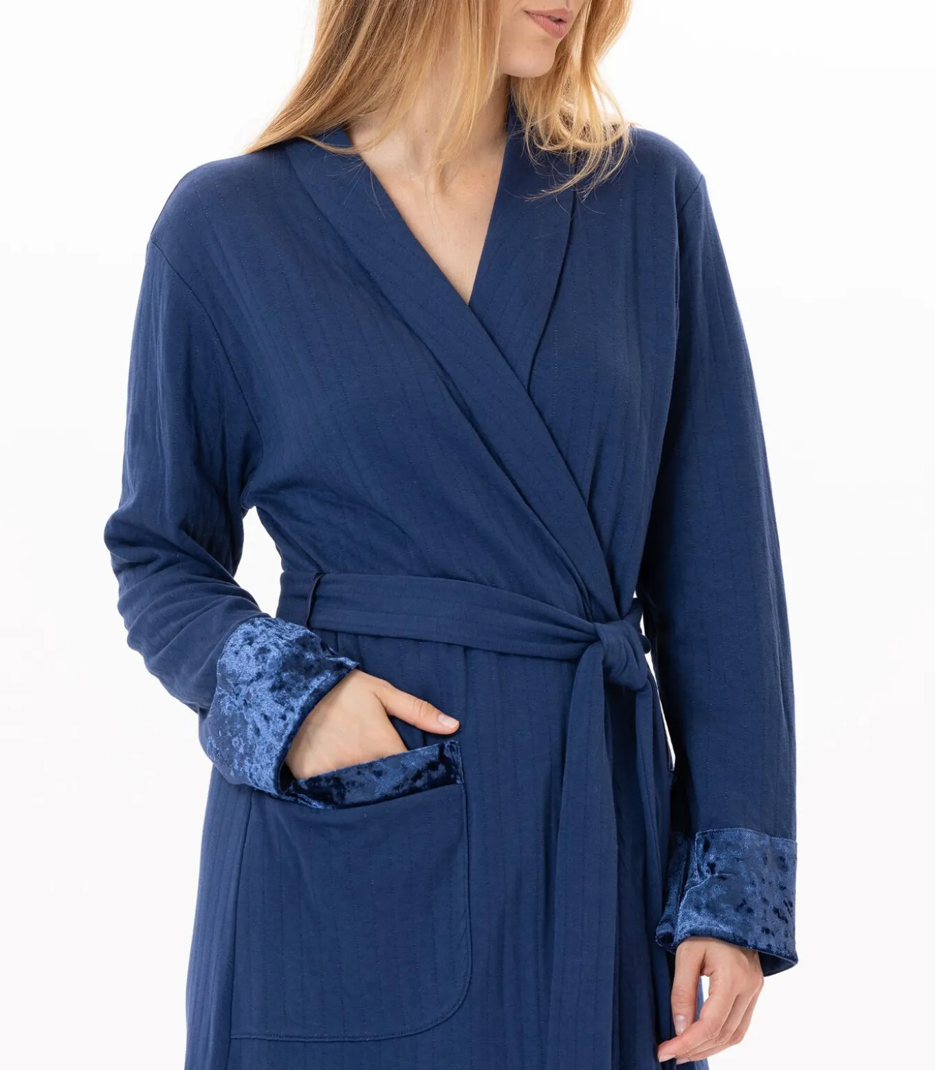 – RechtsonderLE CHAT is afgelopenMeng & Match van materialen: bovenkant van de zakken, onderkant van de mouwen en onderkant van de badjas geaccentueerd door een ton–sur–ton fluwelen ribboord.Hoe u de PILLOW 860 gewatteerde katoenen badjas draagtVan het laagseizoen tot de winter: de PILLOW 860 badjas is de ideale metgezel voor uw dagen en avonden. Hij past perfect bij de nachtjapon PILLOW 801 en de pyjama PILLOW 802.KUSSENlijnZacht, soepel en comfortabel: de gewatteerde katoenen jersey uit onze PILLOW–lijn is een lichtgewicht, gewatteerde dubbel gewatteerde stof.