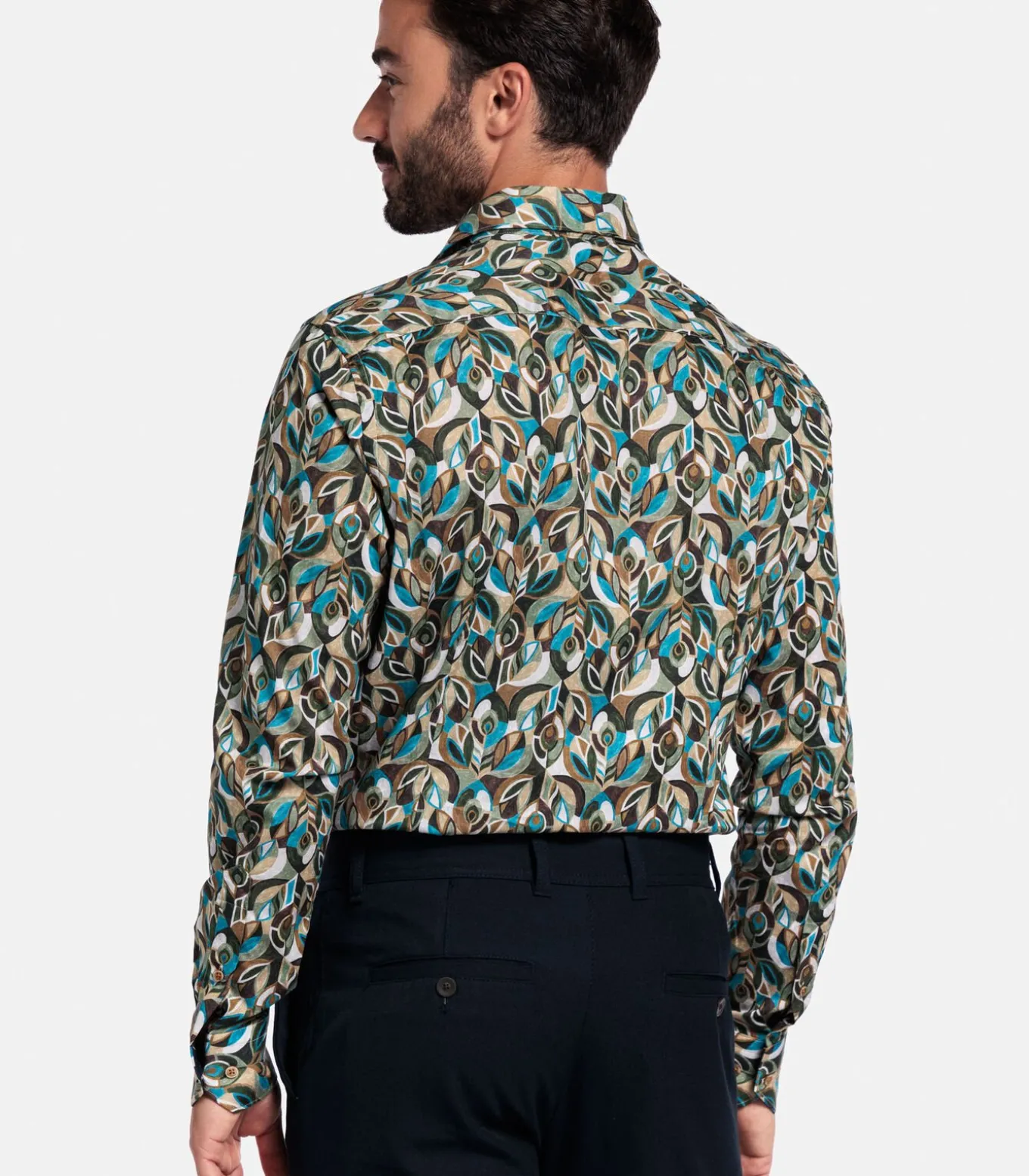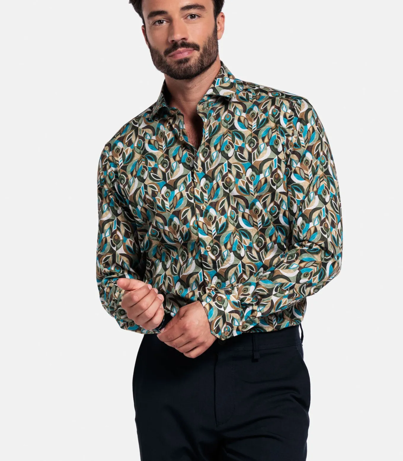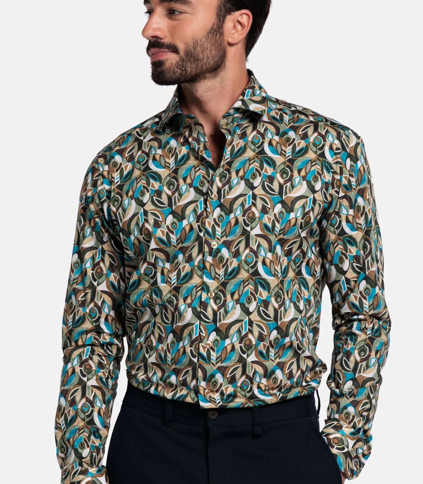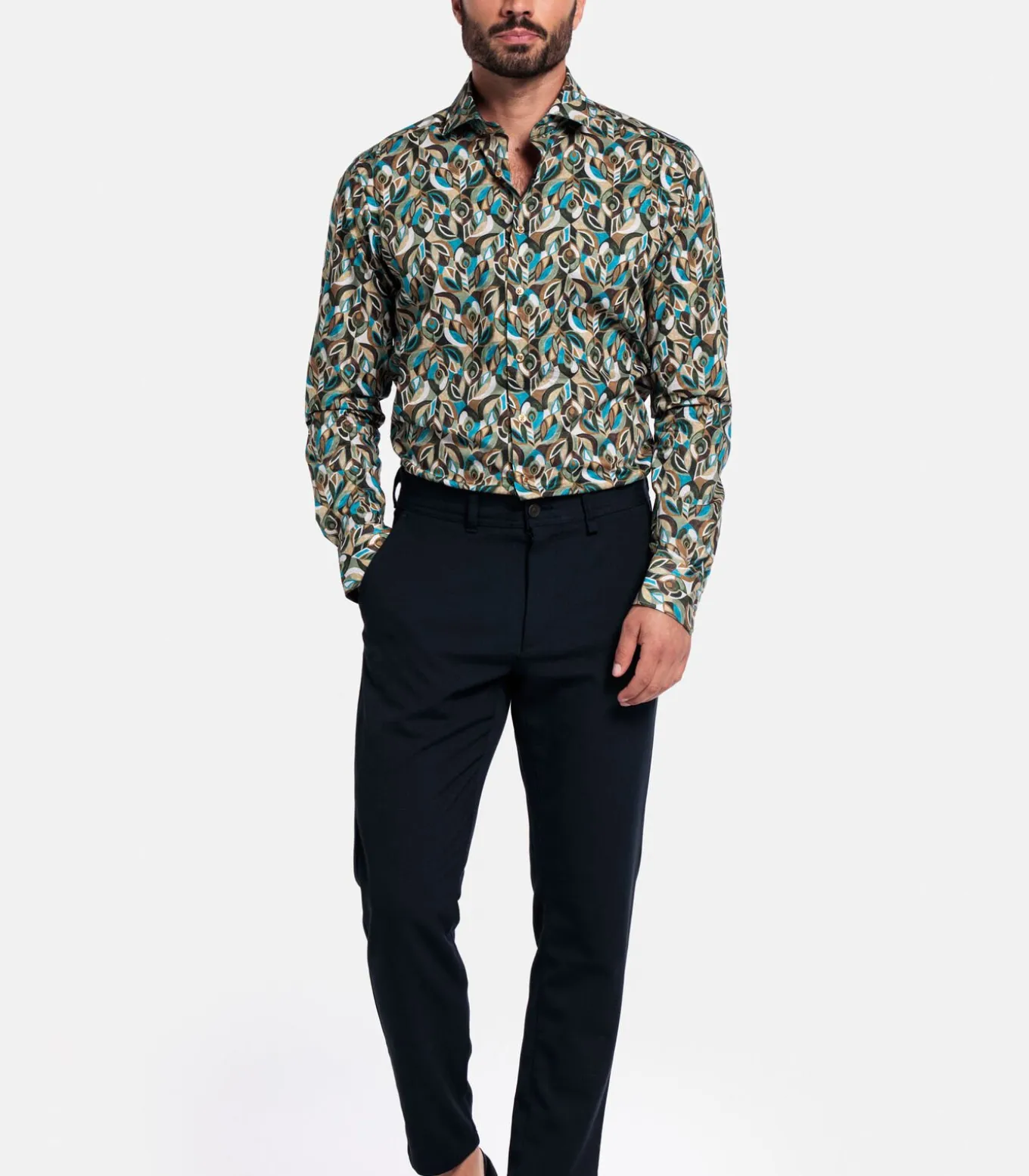 Stijlvol overhemd van Maggiore, gemaakt van 100% hoogwaardig katoen met een opvallende Liberty–print. De semi cutaway kraag zorgt voor een moderne, verfijnde uitstraling, terwijl de zachte katoenkwaliteit zorgt voor optimaal draagcomfort. Het abstracte dessin geeft dit overhemd een eigentijdse twist, perfect voor wie houdt van een subtiele dosis persoonlijkheid in zijn look.