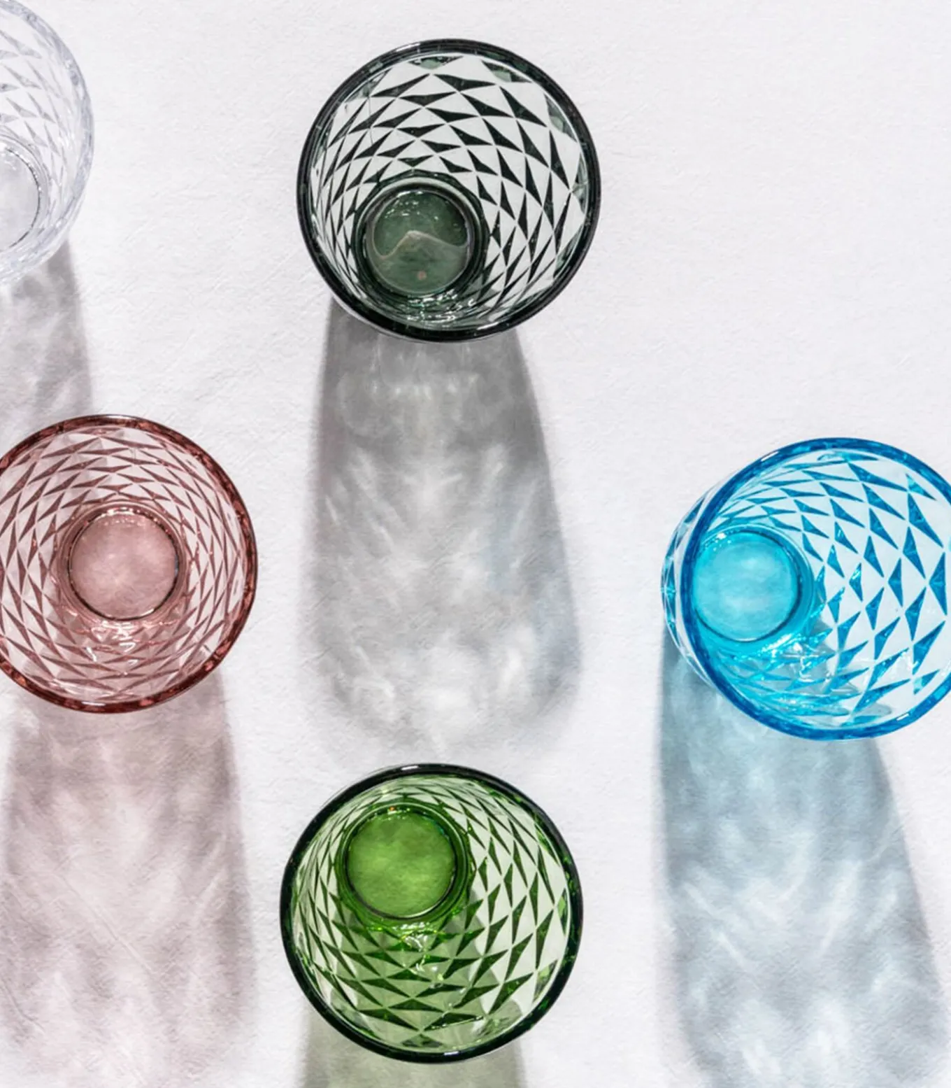 Laten we een toast uitbrengen op onze oogverblindende glaswerkcollectie, onze Prisma reeks. De collectie met geometrische vormen is verkrijgbaar in verschillende uitdagende kleuren.