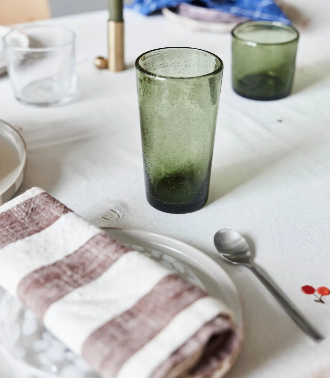 De Kuki Highball glazen in een verpakking van 4 stuks hebben bubbels die een vleugje eigenzinnigheid toevoegen aan hun minimalistische ontwerp. De elegante vorm combineert functionaliteit met tijdloze esthetiek, waardoor ze perfect zijn voor elke tafelsetting. Gebruik ze voor alledaagse diners of speciale gelegenheden. Omdat ze mondgeblazen zijn, varieert elk glas in grootte, wat bijdraagt aan hun unieke charme.