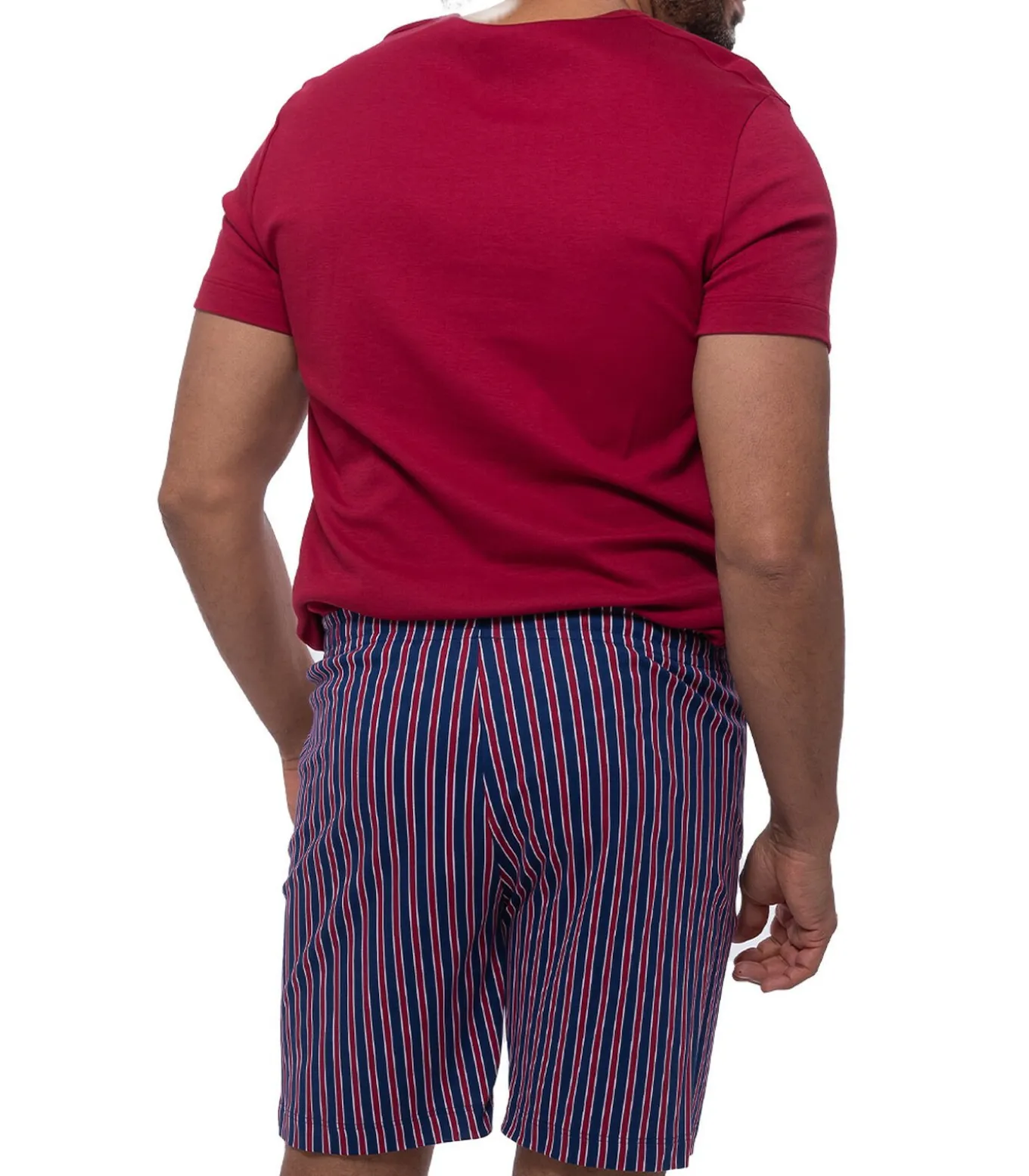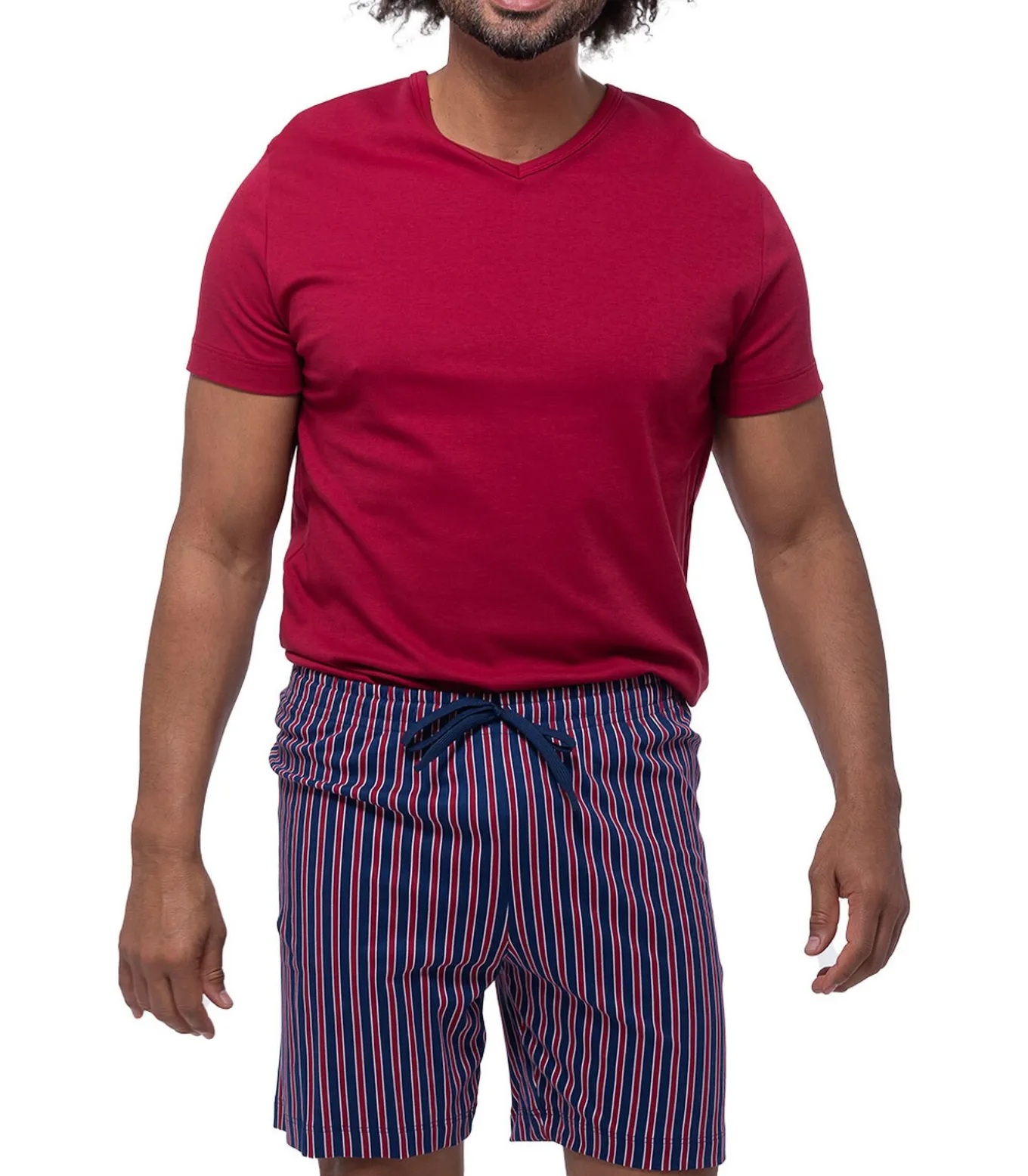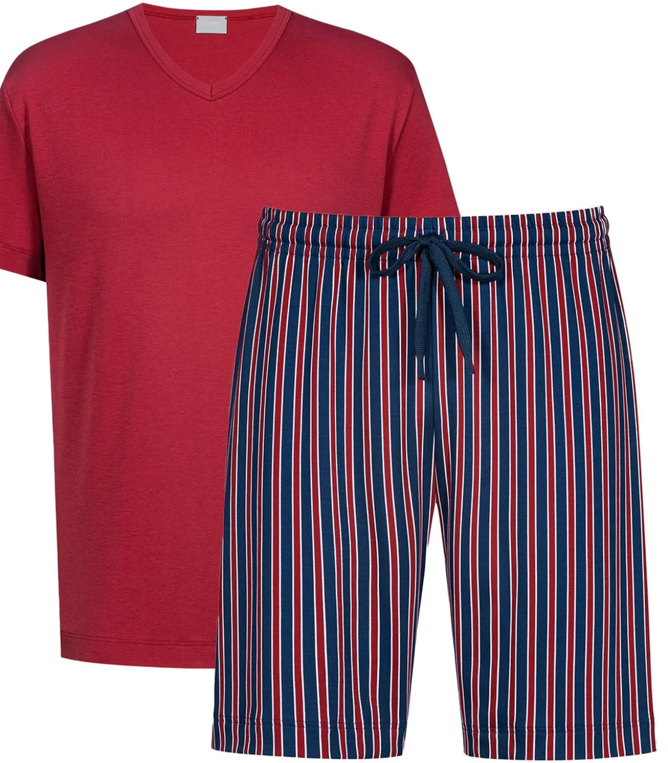 Deze stijlvolle en comfortabele pyjama uit de Graphic Stripes–serie met zachte katoenen interlockjersey vergezelt je tijdens ontspannen nachten. De casual pasvorm, de comfortabele tailleband van de korte broek en de vormvaste, gemakkelijk te onderhouden stof zorgen voor een aangenaam gevoel op de huid. De pyjama wordt aangevuld met een top met zachte katoenen V–hals, die veel bewegingsvrijheid biedt dankzij het losse model en op verschillende manieren gecombineerd kan worden.
