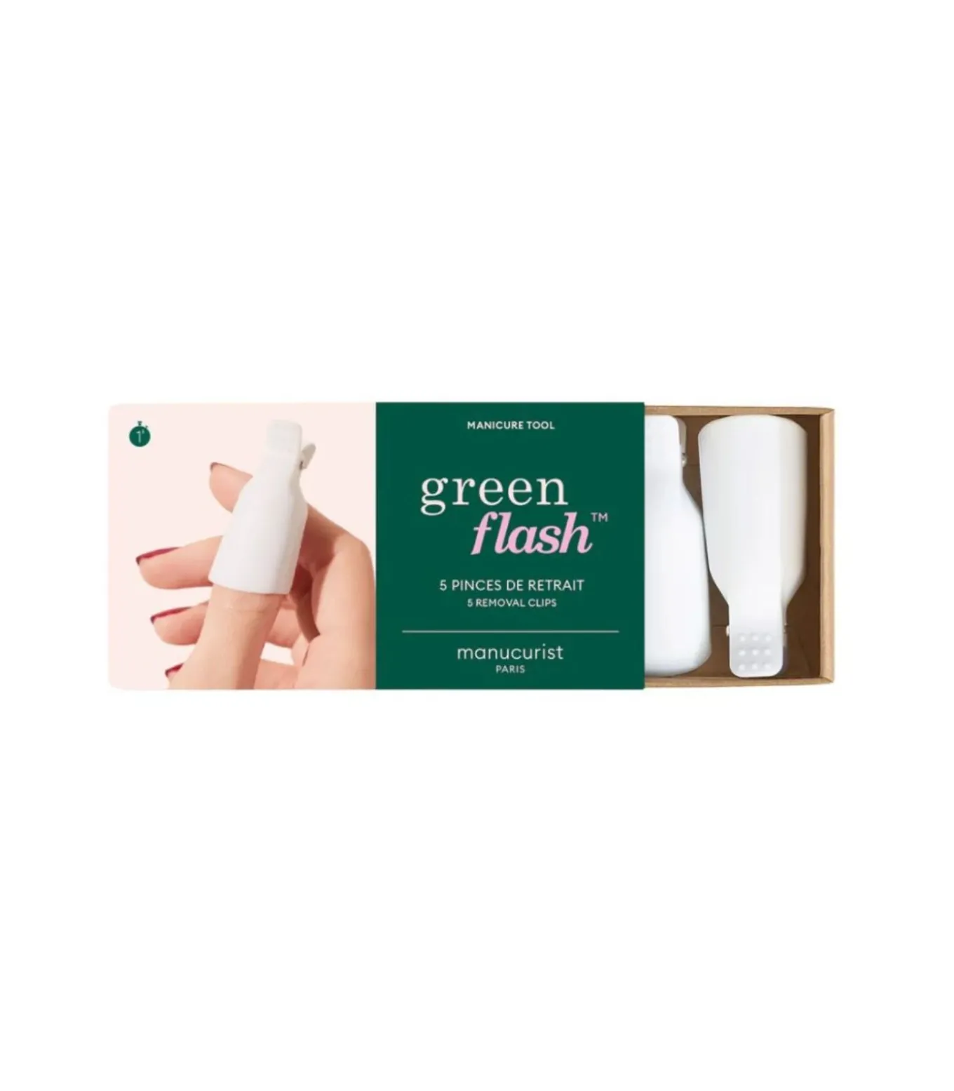 Deze eenvoudige en snelle Green Flash™ nagelclips gebruikt u met katoenen watjes gedrenkt in de zachte remover om de semi–permanente nagellak in stipt 1 minuut te verwijderen. Meer niet! U gebruikt minder watjes en remover en de clips zijn levenslang herbruikbaar. Wat wilt u nog meer?Gebruik:Breng op elke nagel een wattenschijfje aan dat doordrenkt is met Green Flash nagellakremover. Gebruik onze verwijderklemmen om het wattenschijfje op zijn plaats te houden en het verwijderen te vergemakkelijken. Laat 1 minuut inwerken. Blijven er resten van de basislaag achter? Wrijf dan opnieuw.