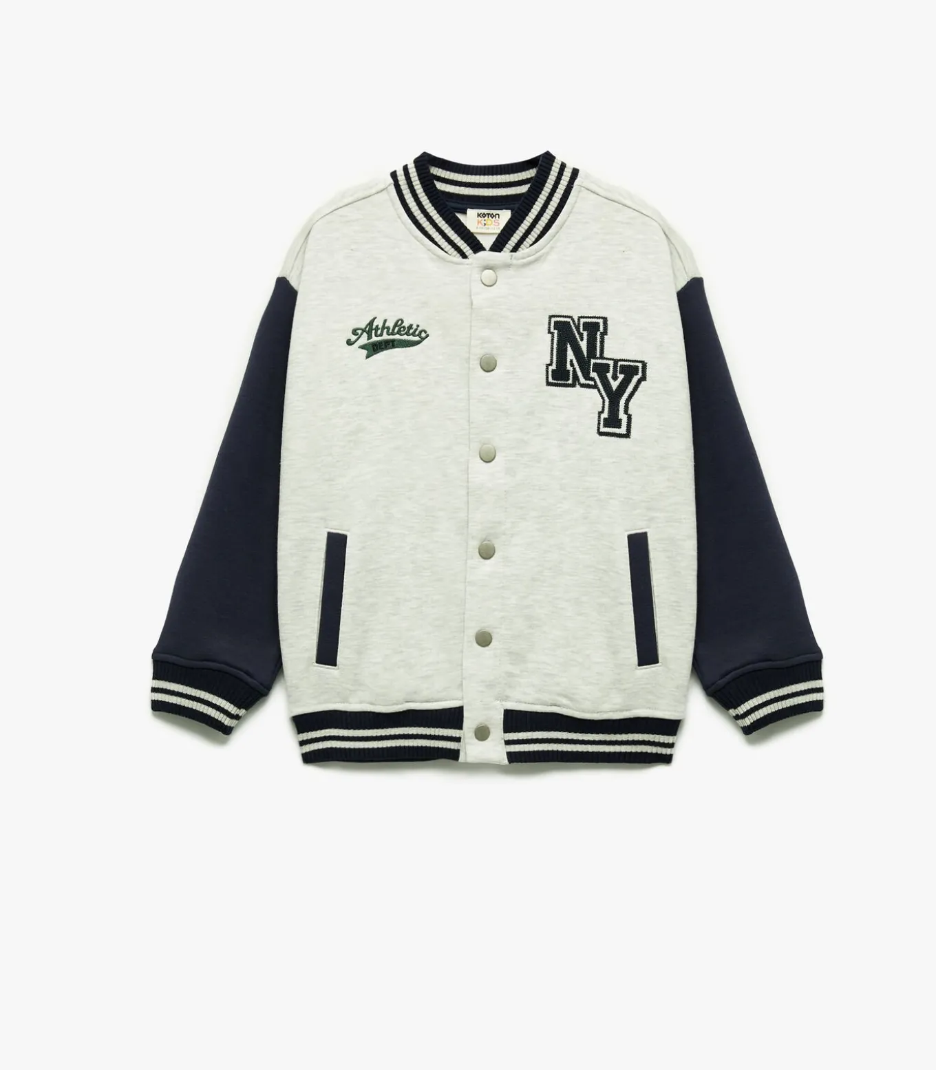 Dit stoere jongens bomberjack combineert sportiviteit met alledaagse stijl. Het heeft lange mouwen en een bomberkraag, perfect voor dagelijkse avonturen. Met opvallende borduurdetails en handige zakken is het een favoriet in elke kindergarderobe. De zachte binnenkant zorgt voor comfort, ideaal voor actieve dagen.