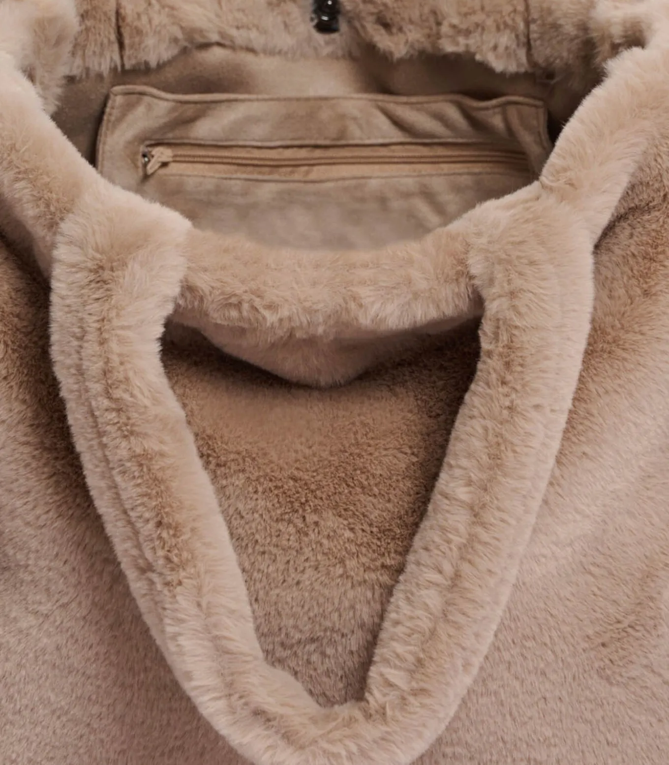 Deze grote shopper van imitatiebont is een perfect accessoire om al je spullen in op te bergen. Deze tas heeft korte hengsels en een binnenvak met ritssluiting.