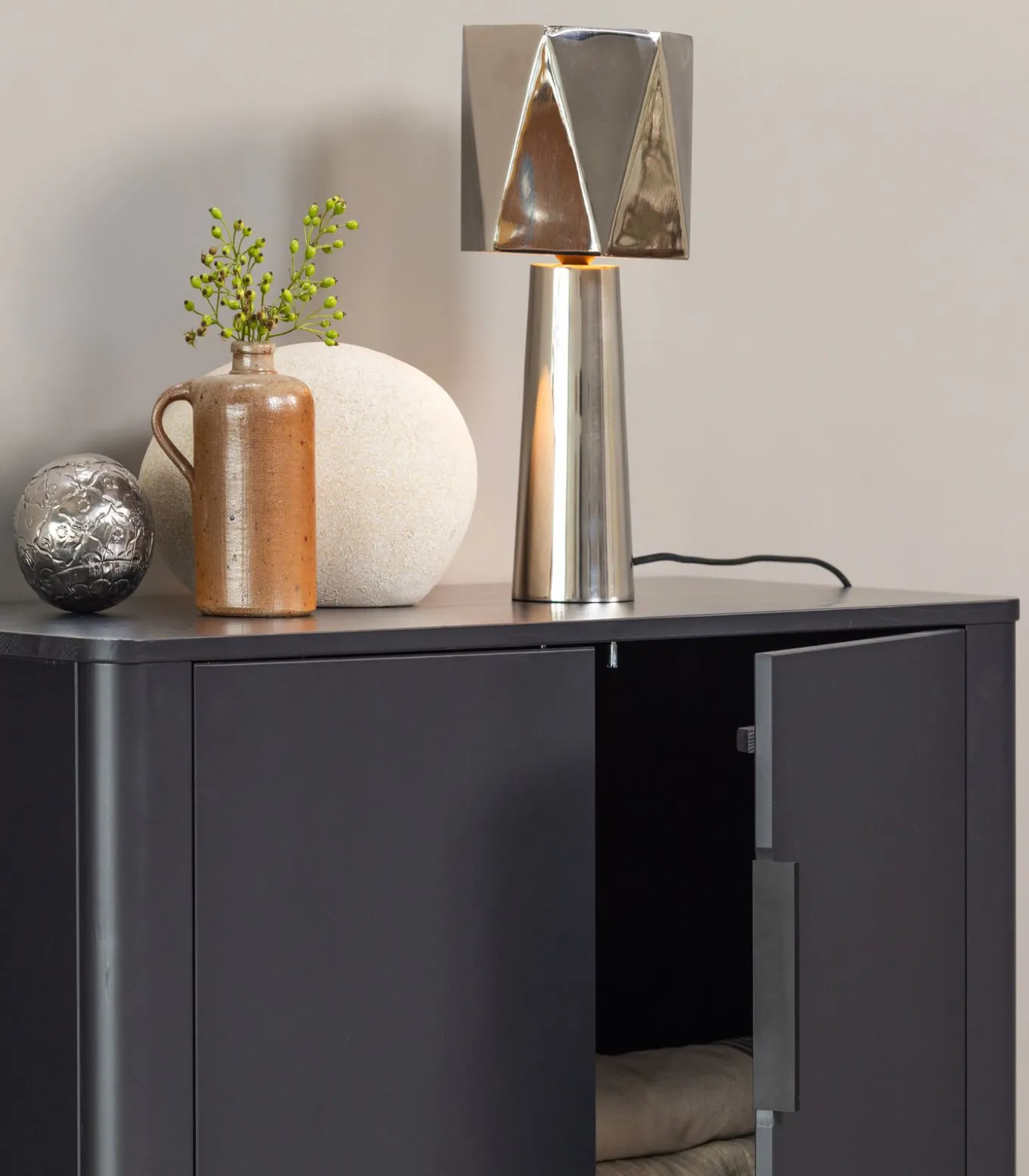 Dit meubel wordt geleverd in twee pakketten en is eenvoudig te monteren aan de hand van de bijgeleverde montage–instructie. Plaats voor het beschermen van harde vloeren viltglijders aan de onderzijde van de poten. Monteer de valbeveiliging met extra zorg om ongelukken te voorkomen.