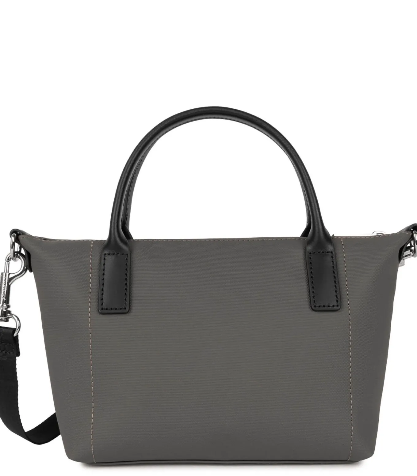 Deze handshopper is gemaakt van gecoat canvas met afwerking in rundleer. Ze heeft een voorvak voor kaarten met drukknoopsluiting en een binnenvak met ritssluiting. Ze kan in de hand, over de schouder of crossbody worden gedragen.