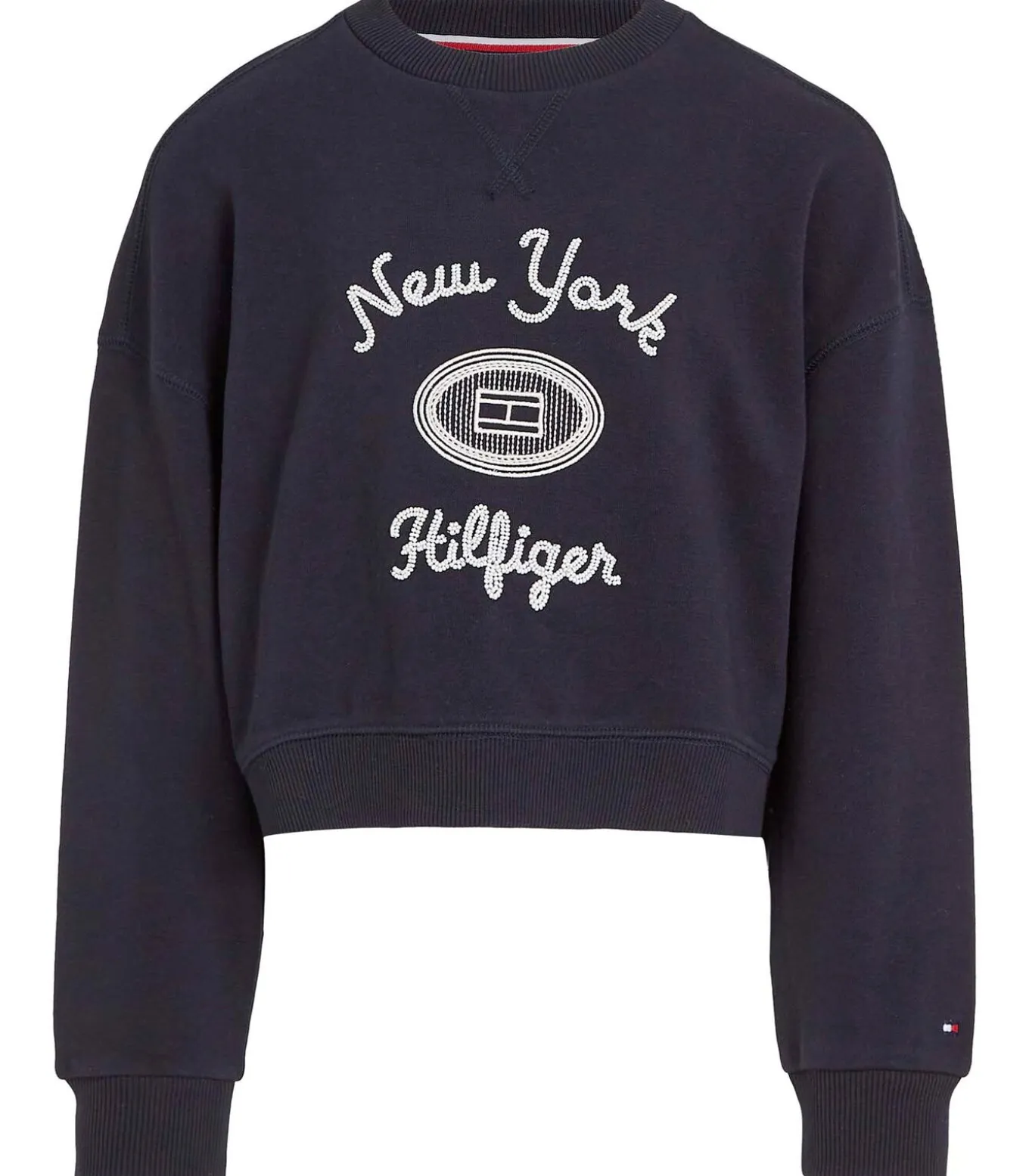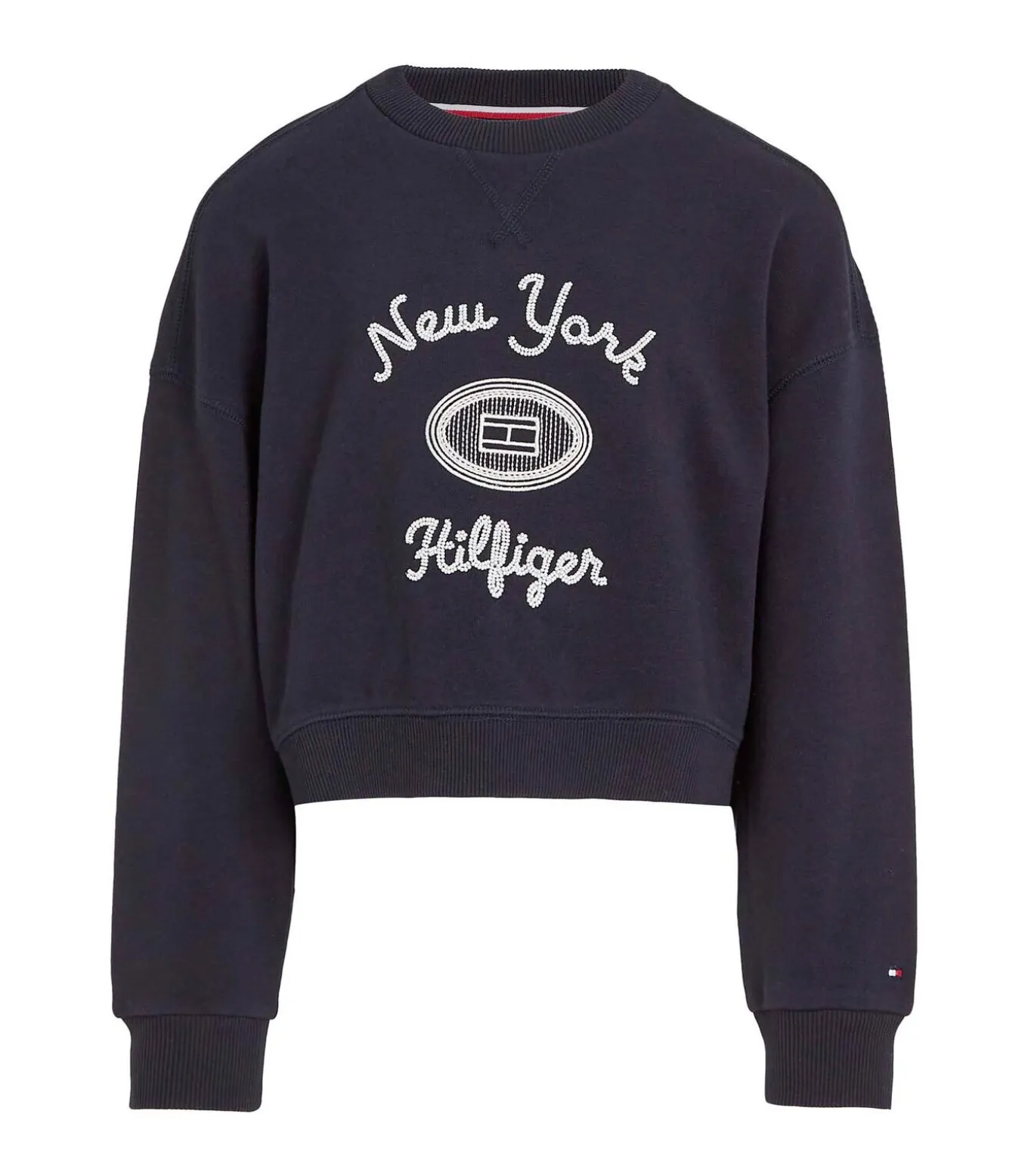 * Kleur: Desert Sky * Mouwen: lang met geribde manchetten en Tommy Hilfiger–vlag geborduurd op de manchet * Halslijn: ronde hals * Pasvorm: regular fit met verlaagde schouders * Details: Tommy Hilfiger NYC–logo geborduurd op de borst, dubbele zoom aan de voorkant , TH–brandingcollectie
