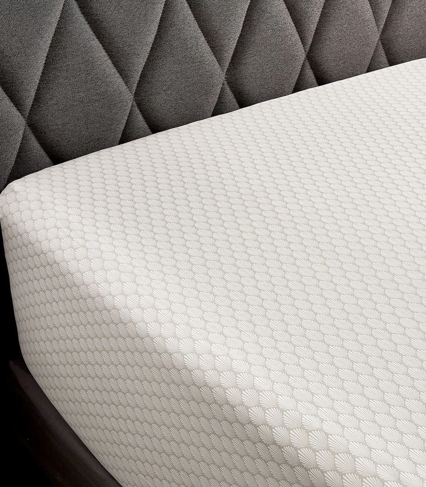 Palmettenmotief op een grègekleurige achtergrond.Hoeslaken met een hoogte van 35 cm