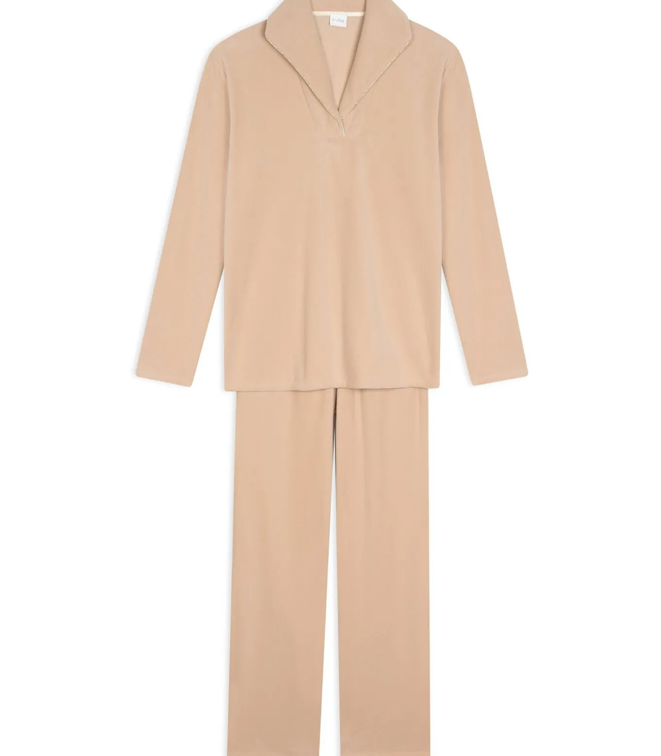 Bij LE CHAT zijn we dol op neutrale tinten die de herfst en winter opwarmen en je teint opfleuren zodra je wakker wordt. De Linette–set is verkrijgbaar in een stralende karamelkleur voor een direct gezonde gloed. Gegarandeerd comfort: de sjaalkraag omhult de hals subtiel en voegt een vleugje behaaglijke elegantie toe aan je cocooning silhouet.