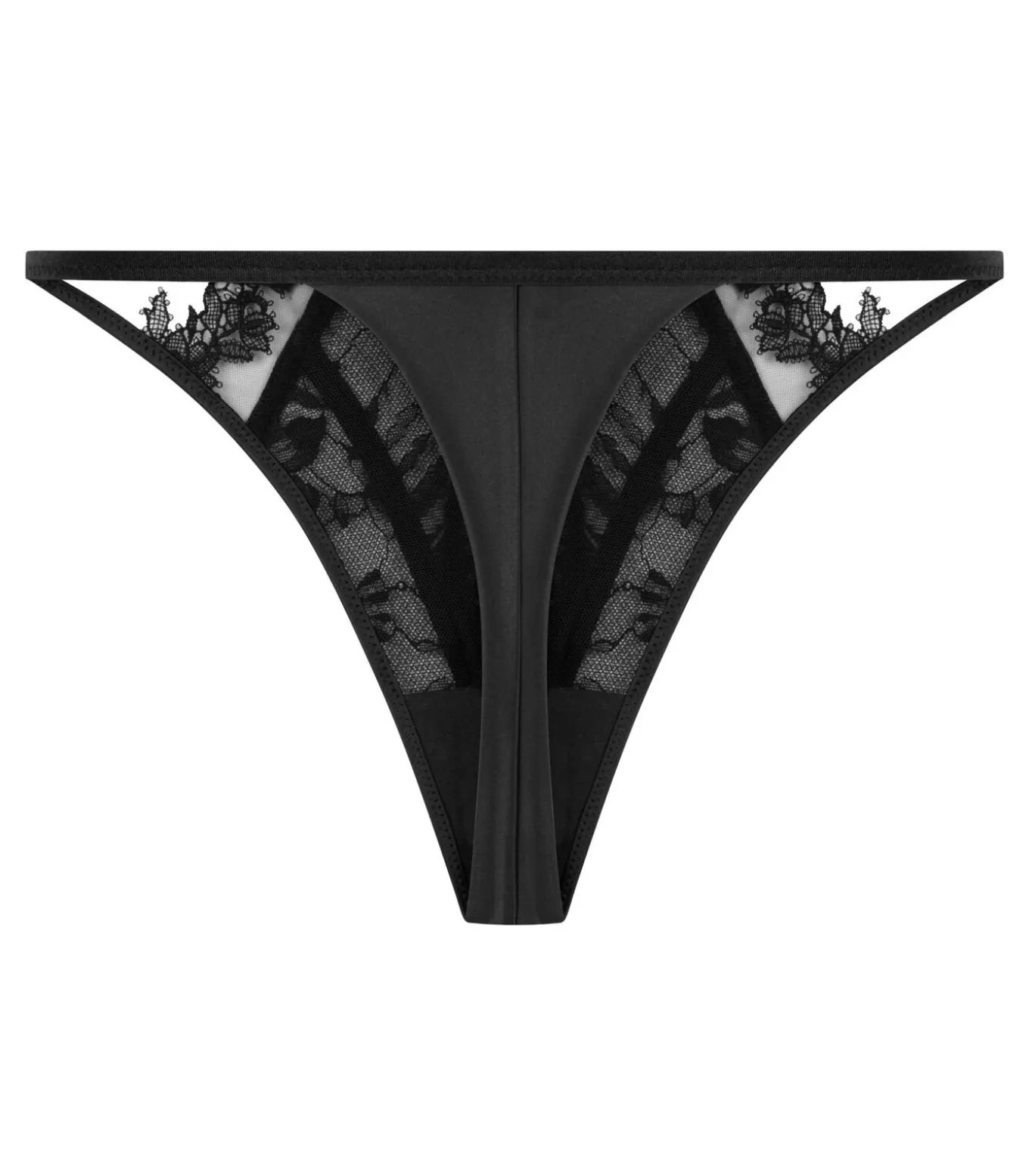 Deze string is ontworpen om te flatteren en combineert kant met uitgesneden details voor een romantische en gedurfde look. De hoog uitgesneden pasvorm verlengt je silhouet, terwijl het kant zachtheid en textuur toevoegt. Combineer hem met de bijpassende bh voor een complete look.