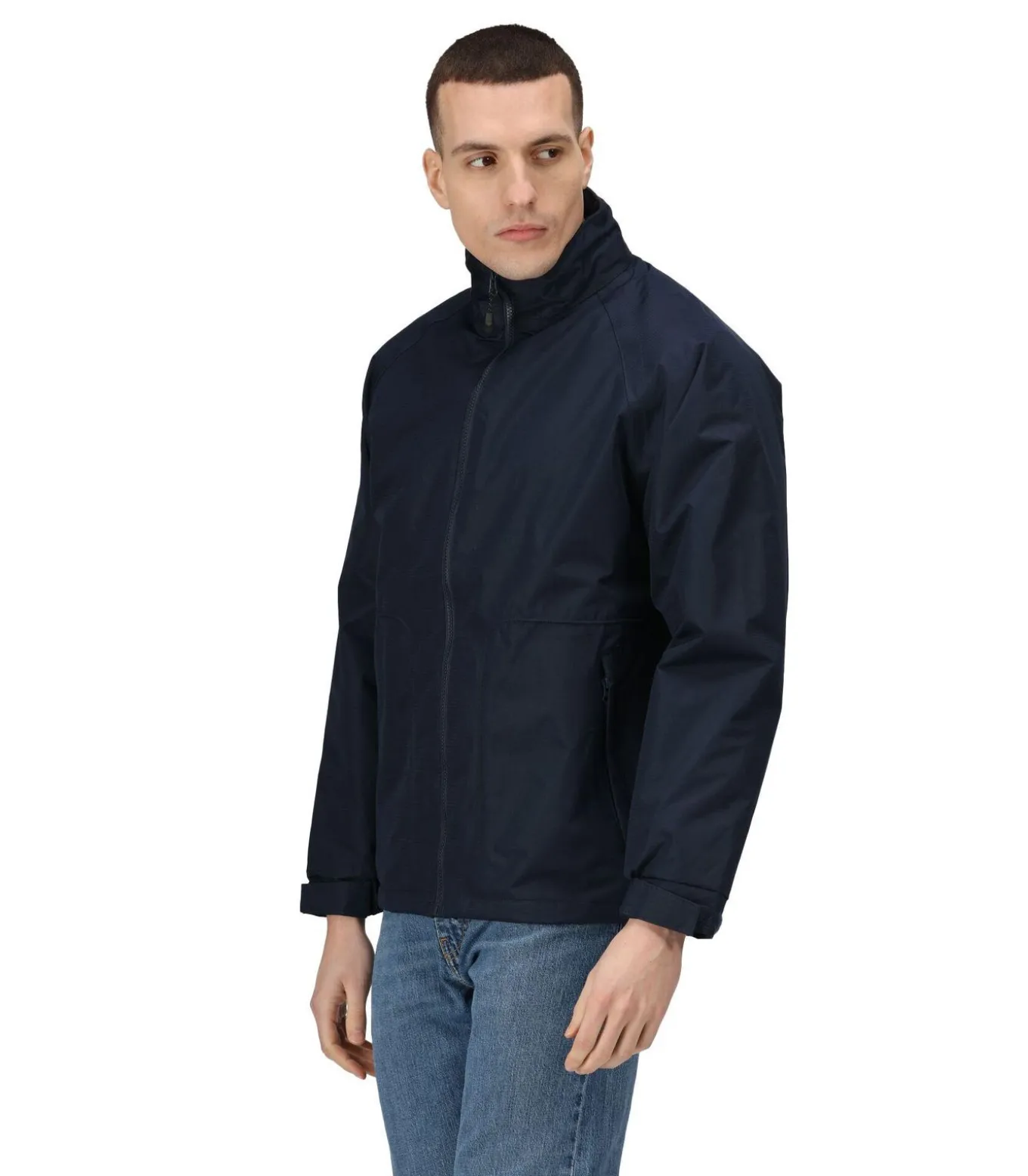 Regatta Hudson – Marineblauw Jasje gemaakt van 100% Polyester met eenvoudig ontwerp en eenvoudige stof (Hydrafort, Polyester). De jas heeft een fleece vulling en beschikt over stoftechnologie als Anti–Pilling, Isoflex, Symmetrie Fleece, Thermo–Guard, waterdicht en winddicht. De manchetten zijn verstelbaar en de mouwen zijn met lange mouwen. Shockcord zoom is toegepast en het stof is voorzien van getapete naad. De halslijn bestaat uit een staande kraag en ritshals. Het hoofddeel van de jas is verstelbaar en verborgen, terwijl er zakken beschikbaar zijn voor mobiele telefoon, twee zakken onderaan en binnenzak. De jas heeft volledige ritssluiting en kan worden aangepast met sizes 38 in., 40 in., 42 in., 44 in., 48 in., 51 in. en 54 in.