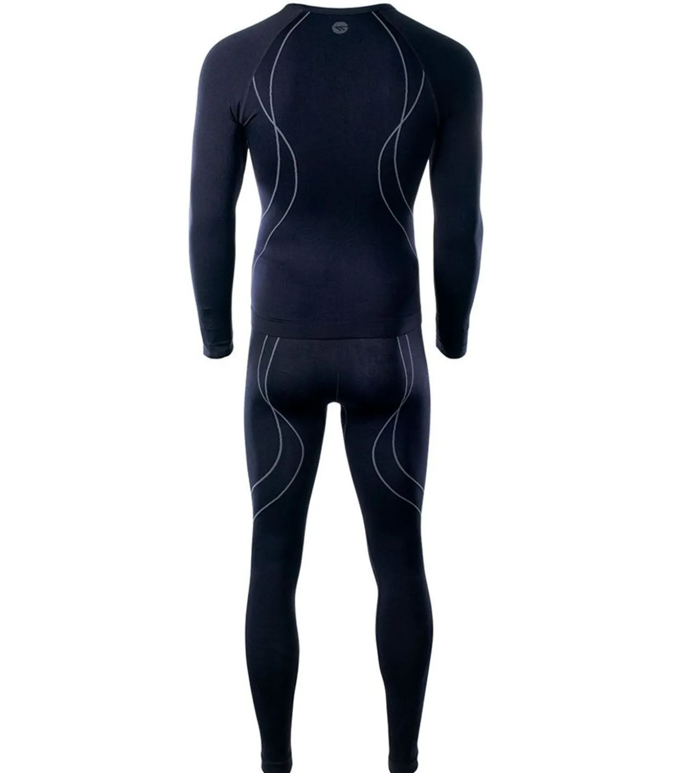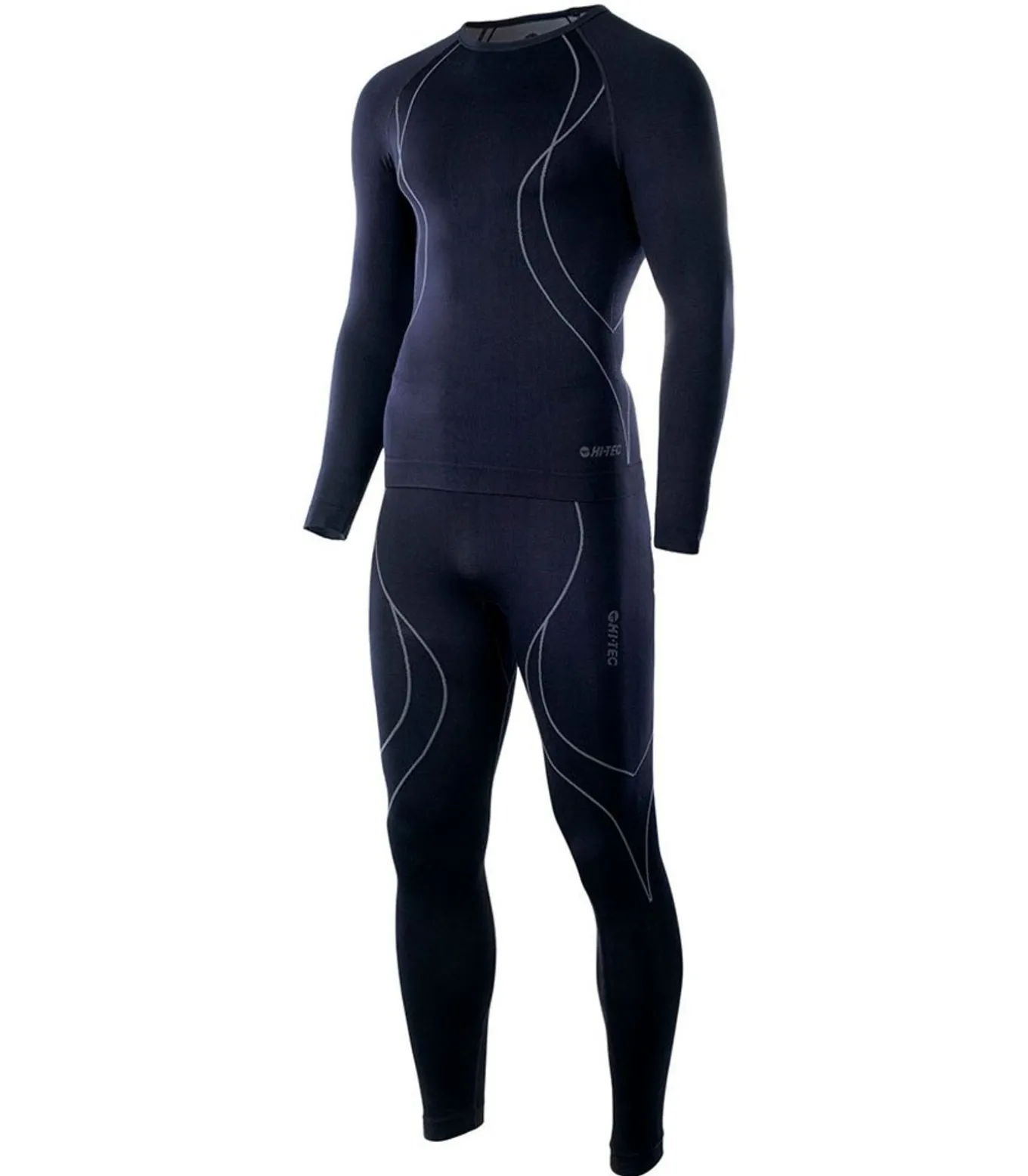 Deze basislagenset van Hi–Tec is gemaakt van 56% polyester, 36% nylon en 8% elastaan. Het ontwerp heeft contrasterende boorden en logoprints. De top met ronde hals en de getailleerde onderkant hebben lange mouwen. Gebruikers kunnen de stukken naar behoefte aan– en uittrekken. De ademende en flexibele stof is vochtafvoerend en sneldrogend. Bovendien reguleert het de temperatuur door thermische eigenschappen terwijl het naadloos en elastisch blijft. De lange boven– en onderkant zijn samen verpakt in een doos. Het broekje heeft een elastische taille voor een stevige en comfortabele pasvorm.