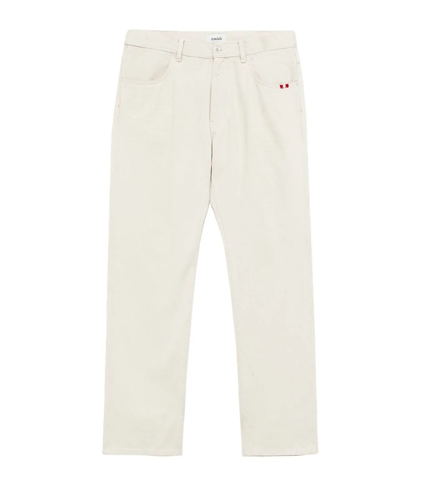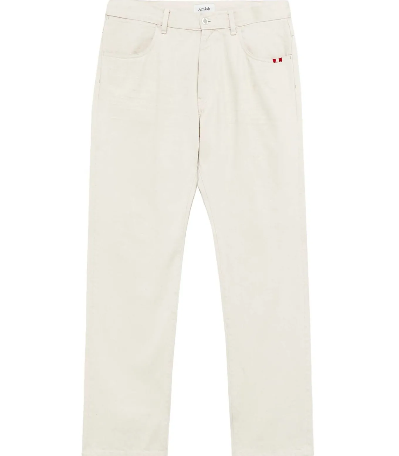 * Kleur: Ecru * Samenstelling: 100% katoen * Pasvorm: Rechte pasvorm voor een recht en comfortabel silhouet * Sluiting: Sluiting met logoknoop en rits * Details: Effen selvedge denim met natuurlijk effect. Lus van logostof op de achterkant, achterzakken met contrasterend borduurwerk. * Gebruik: Perfect voor een verfijnde, casual look, ideaal om te combineren met sneakers of loafers voor een veelzijdige en verfijnde outfit.
