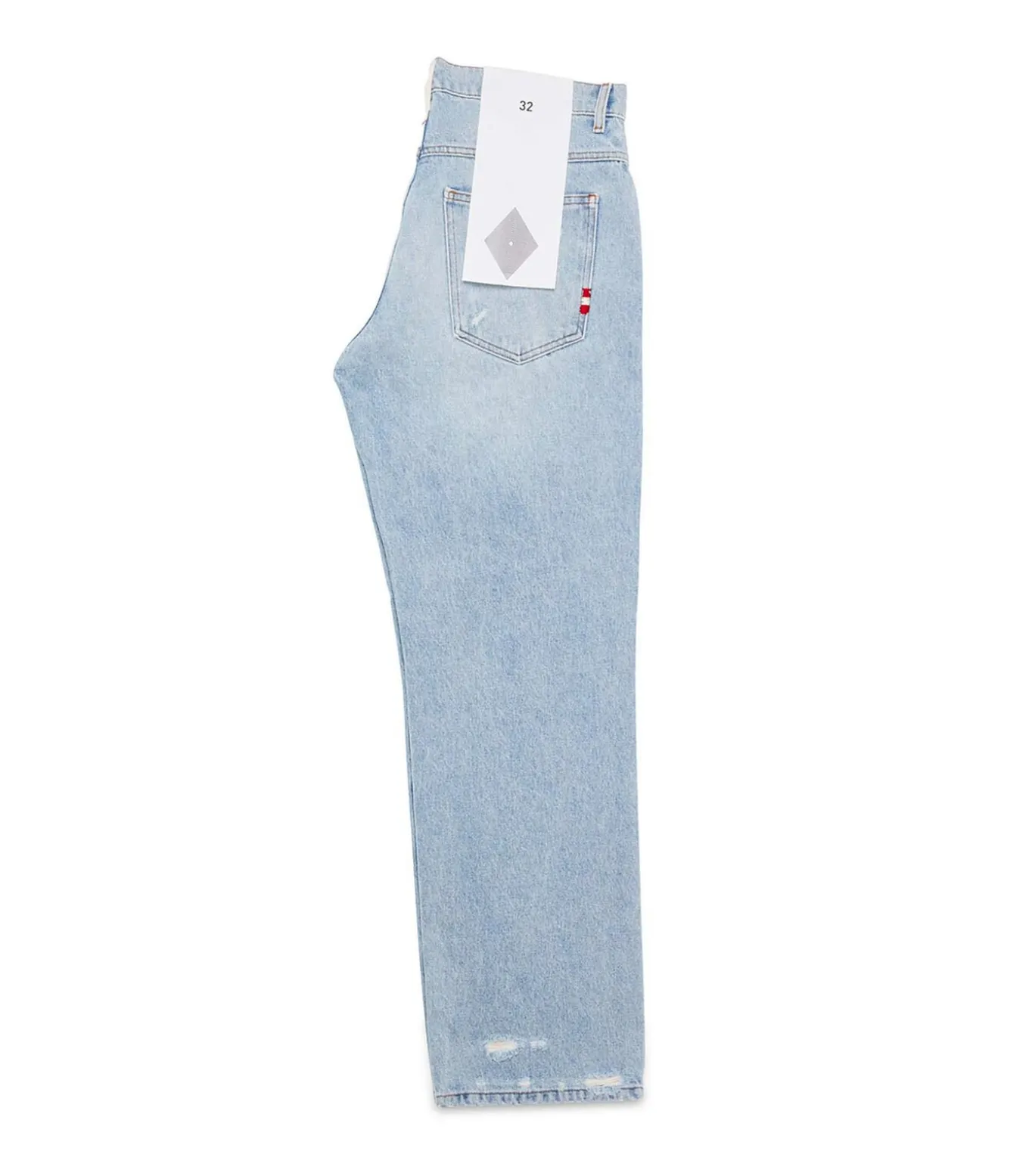 * Kleur: Licht denim * Samenstelling: 100% katoen * Sluiting: Sluiting met logoknoop en rits * Details: Used–effect en scheuren op de voorkant voor een casual en trendy look. Iconisch logo–stoflusje op de achterkant, achterzakken met contrasterend borduurwerk. * Gebruik: Ideaal voor een casual en trendy look, perfect te combineren met sneakers of sandalen voor een dagelijkse outfit met een sterk karakter.