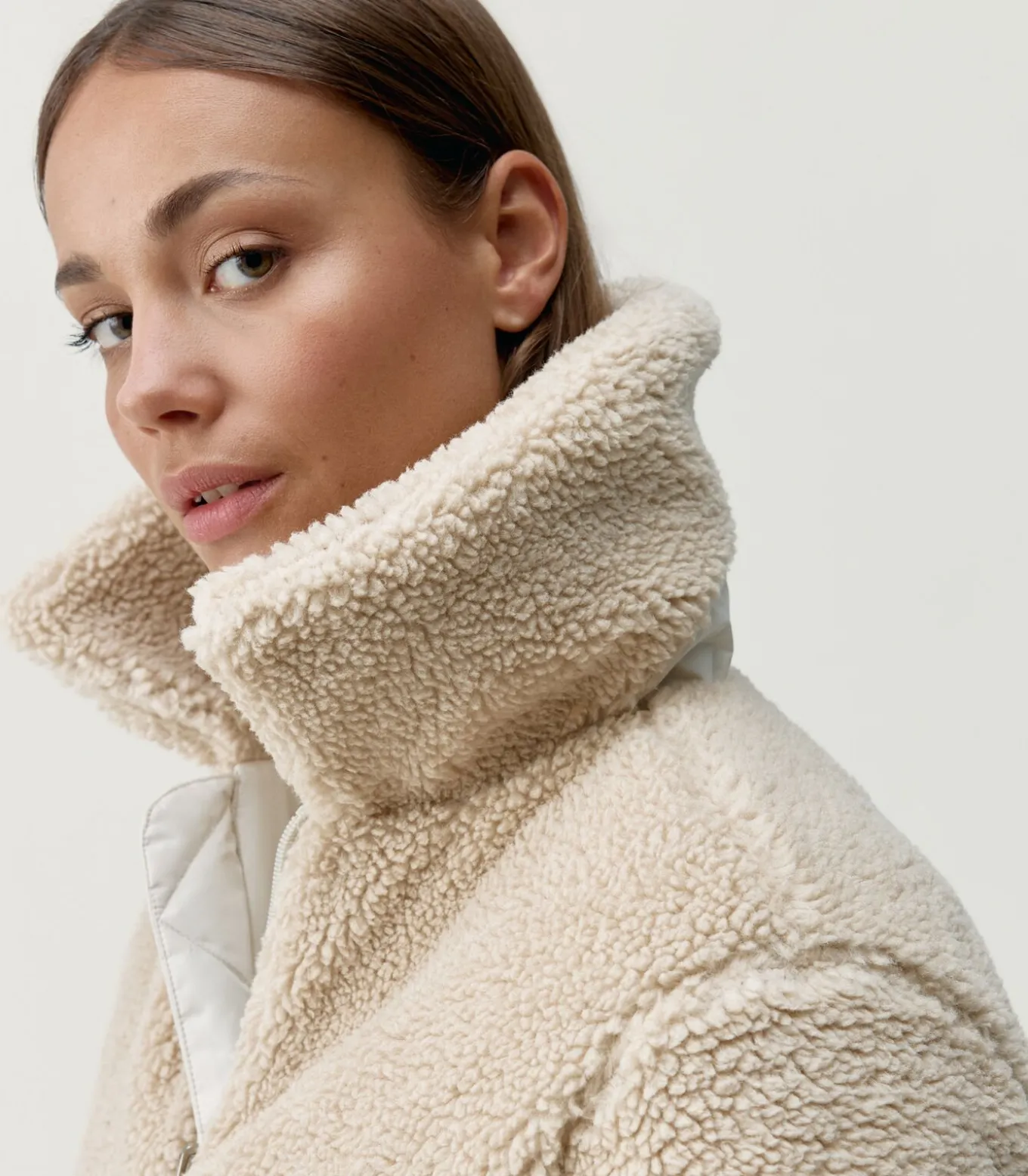 Omkeerbare jas. “Hydre_T” stof met een matte afwerking met thermische isolatie en fleecestof in sherpa–stijl. Functionele zakken aan beide zijden. Zeer comfortabel ontwerp in stedelijke stijl, ideaal voor alle buitenactiviteiten bij lage temperaturen. Veganistische vulling. Windafstotend Hoge zonnebeschermer Warm Veganistisch gewatteerd Omkeerbaar
