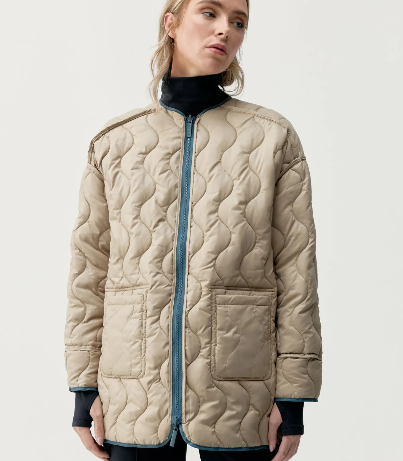 Omkeerbare tweekleurige gewatteerde jas. Windafstotende stof met thermische isolatie. Dubbele cursor ritssluiting. Opgestikte zakken aan beide zijkanten. Functioneel ontwerp met twee kleuropties om mee te pronken en super comfortabel. 100% veganistische vullingWindafstotendWaterafstotend Hoge zonnebeschermer WarmVeganistisch gewatteerd Omkeerbaar
