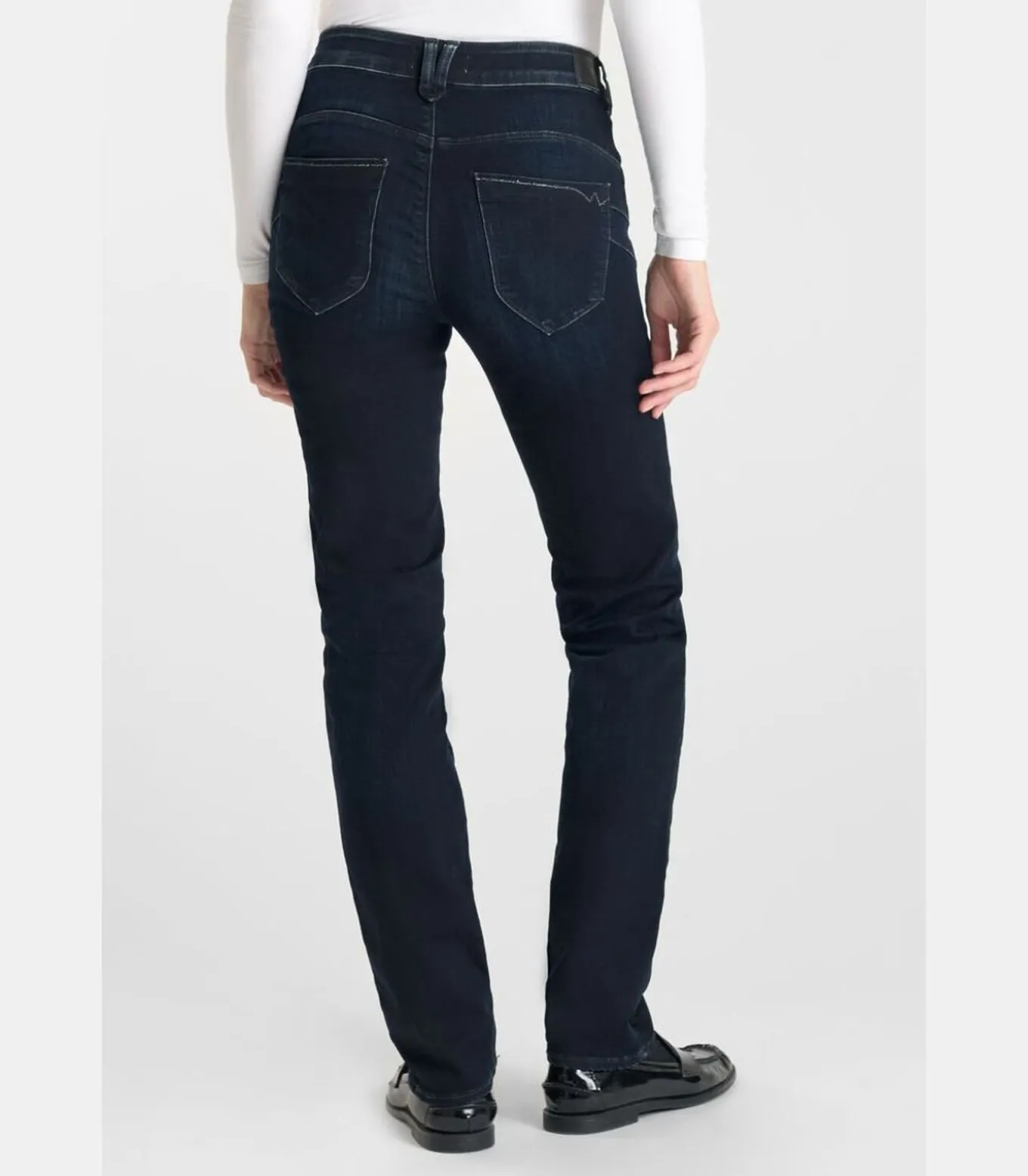 Nauw aansluitende pasvorm, regular voor de pijpen. Een mooi gevormd lichaam en een gegarandeerd mooi achterwerk door het push–up effect in combinatie met de hoge taille. Een jeans die iedere lichaamsbouw mooi doet uitkomen: slank, rond, klein of groot!