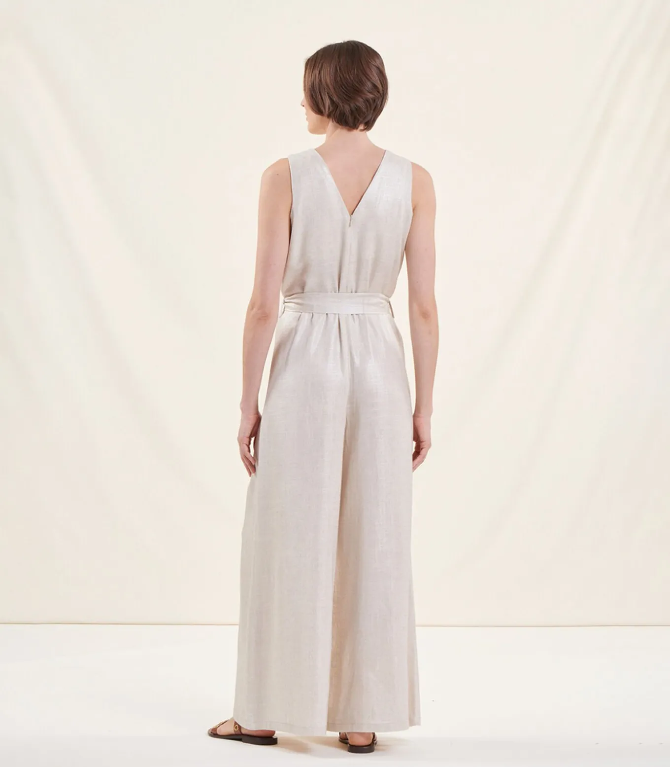 Jumpsuit met V-hals zonder mouwen van linnen
