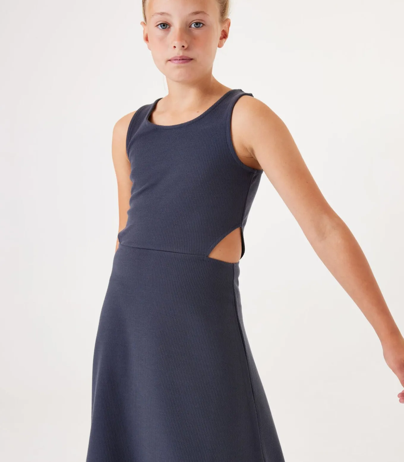 Ribstof jurk met open zijkant. Een vrolijk item als deze is ideaal voor dit seizoen! Deze jurk heeft een ronde hals en een regular fit. Dit item is gemaakt van 56% polyester, 40% recycled polyester en 4% elastaan.Dit GARCIA kledingstuk is gemaakt met gebruik van recyclede garen. Recyclede materialen worden gemaakt uit restmateriaal, wat weer wordt omgezet tot grondstof.