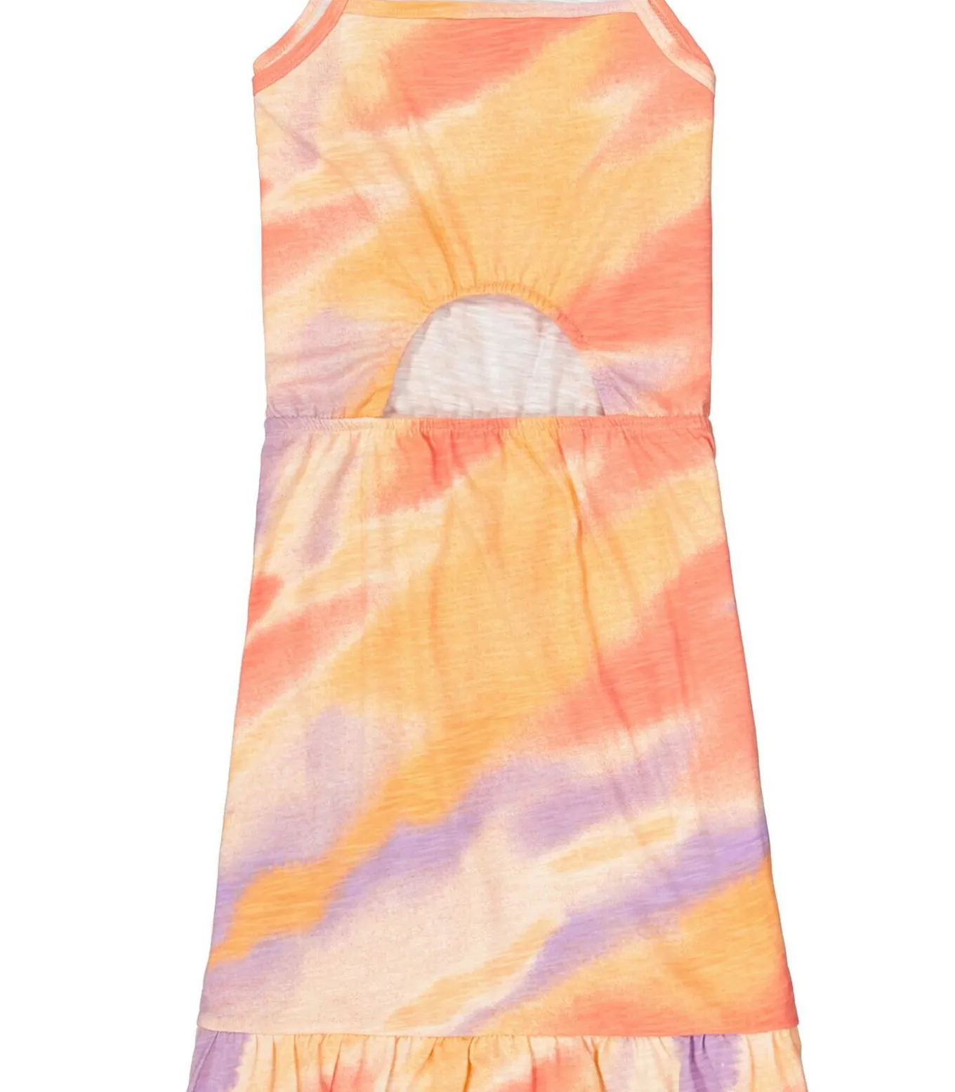Jurk met tie dye Een vrolijk item als deze is ideaal voor dit seizoen! Deze jurk heeft spaghettibandjes en een regular fit. Dit item is gemaakt van 60% katoen en 40% polyester.Better Cotton is een initiatief dat zich wereldwijd inzet voor betere omstandigheden in de katoenindustrie.