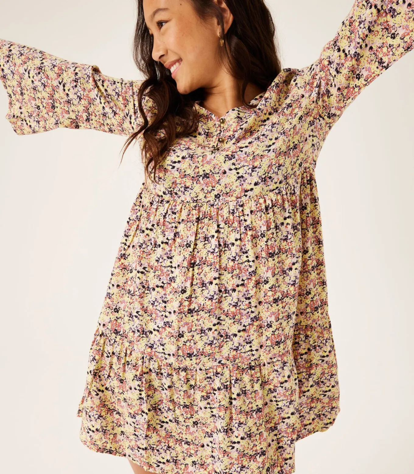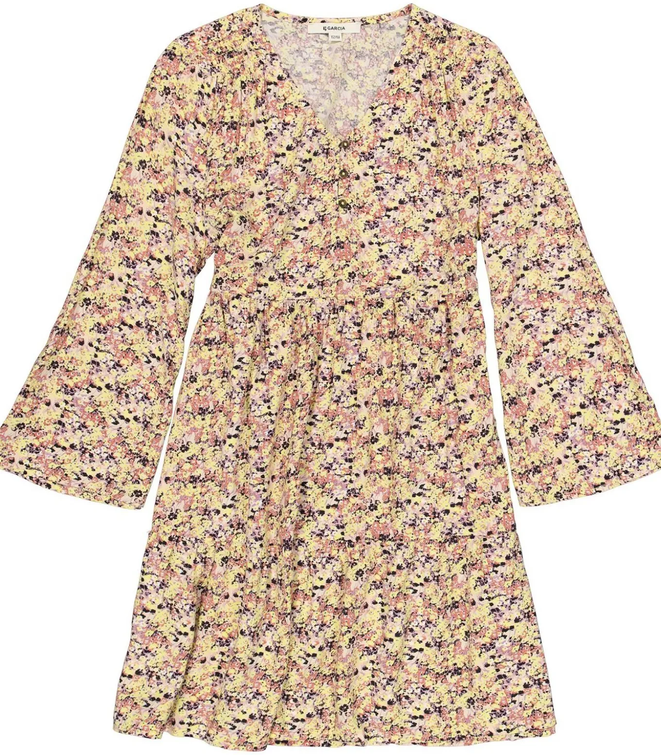 Jurk met allover print. Deze jurk heeft lange mouwen, een V–hals en een loose fit. Dit item is gemaakt van 100% viscose.