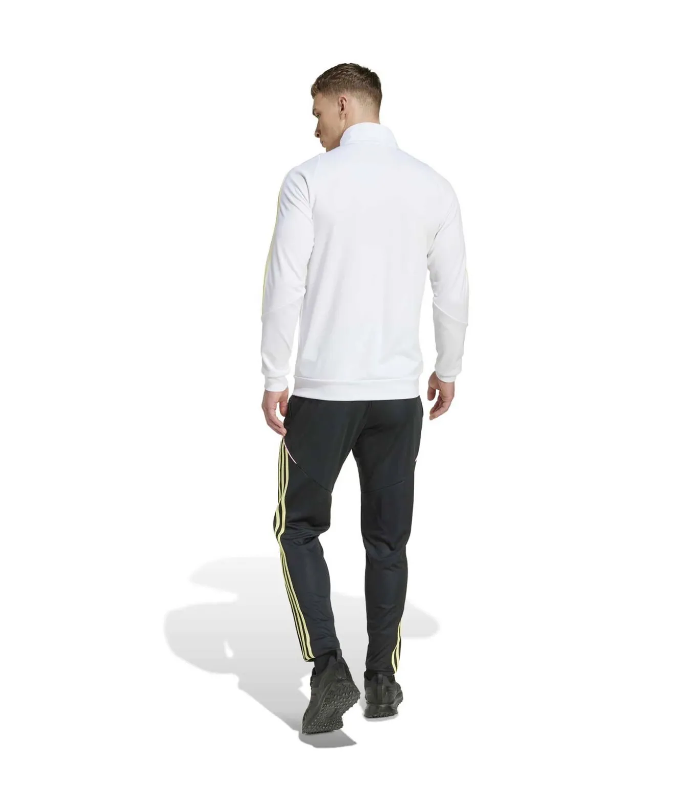 Kleur: Wit Samenstelling: 100% gerecycled polyester Mouwen: Lang Halslijn: Hoge hals Pasvorm: Smal Sluiting: Rits Details: Officieel Juventus trainingspak bestaande uit een jas en een broek, gemaakt van lichtgewicht en ademend dubbel garen met AEROREADY–technologie voor optimaal comfort in elke situatie. De iconische 3–Stripes op de mouwen en zijkanten, de contrasterende roze profielen en de geborduurde clubwapens op de borst en het been maken de ware fanlook compleet. Gebruik: Ideaal om stijlvol te trainen of te ontspannen terwijl je de Bianconeri aanmoedigt bij elke gelegenheid