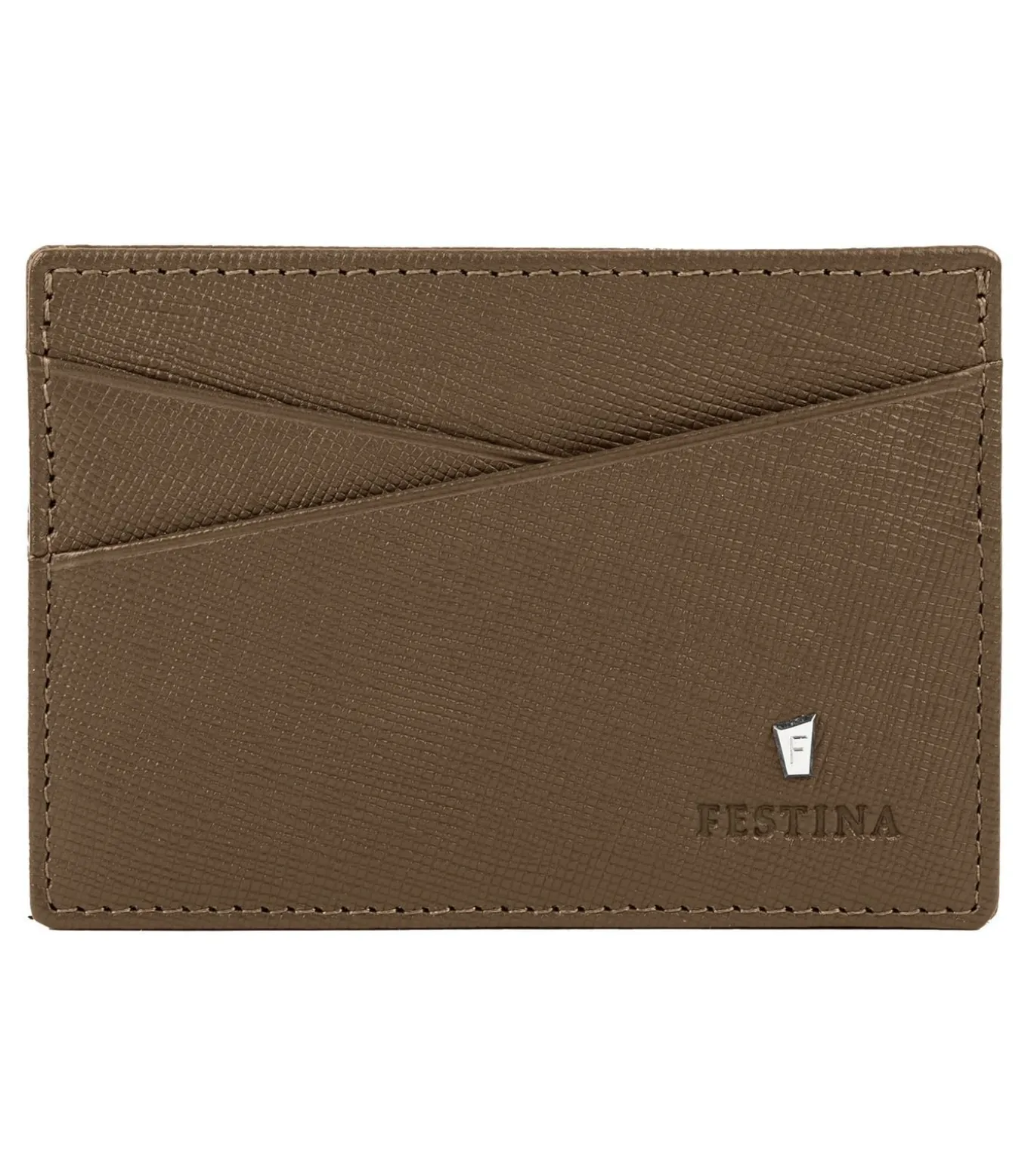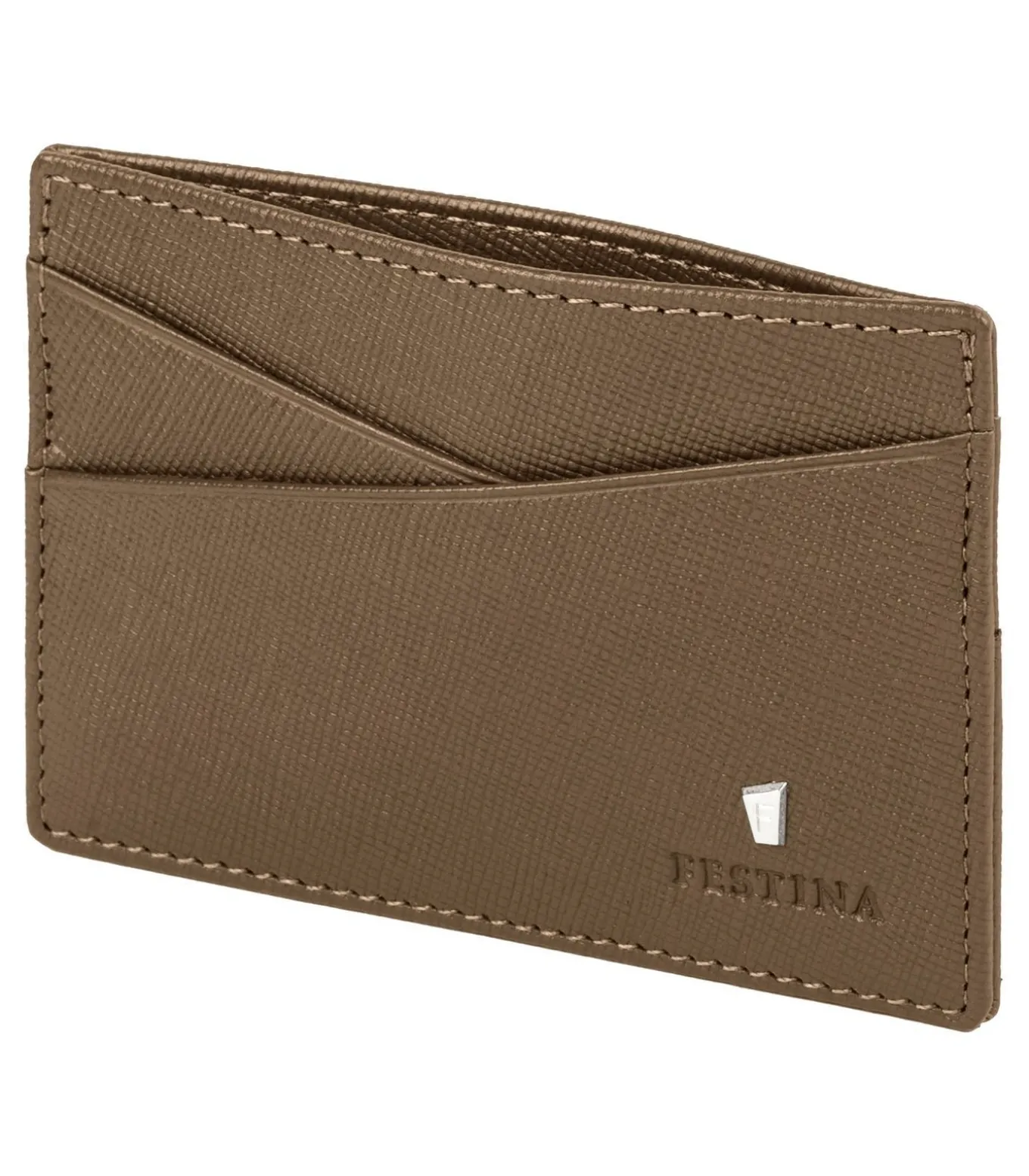 De “Chronobike” lijn van kleine lederwaren is gemaakt van echt kwaliteitsleer met een Saffiano textuur. Deze nieuwe camelkleur is versierd met een chromen handtekening waaronder de letter “F” van Festina, in een trapeziumvorm. Deze kaarthouder is in de huidige minimalistische trend, compact en praktisch, met 4 zijvakken en een hoofdvak voor kaarten in het midden. Alle Festina artikelen zijn voorzien van een beschermende RFID–voering. Dimensions: 74 x 105 mm, Material: Leather