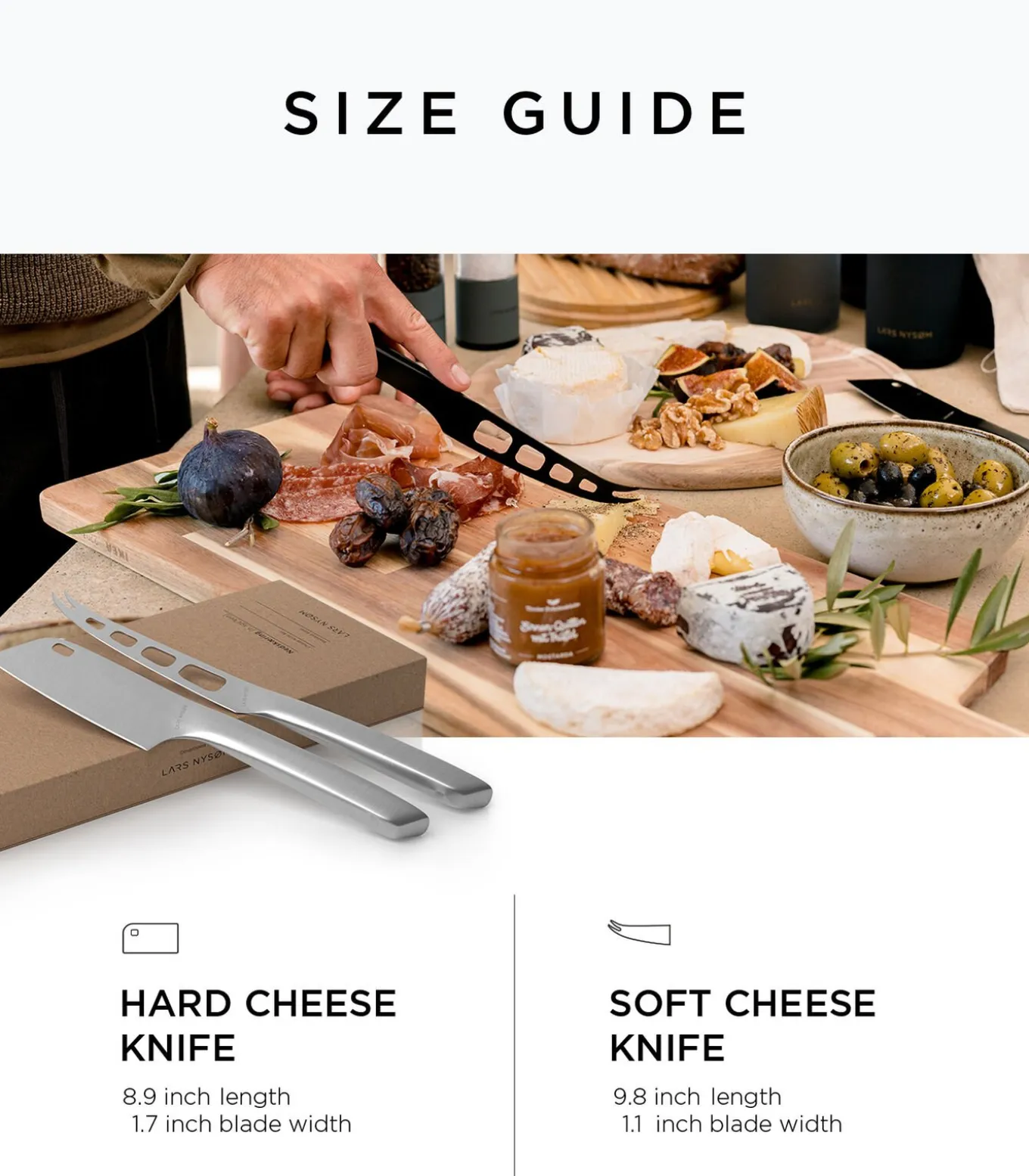 De set bestaat uit een kaasmes voor zachte kaas en een kaasschaaf voor harde kaas. De messen hebben extra geharde, ultrascherpe roestvrijstalen lemmeten en zijn ideaal voor alle soorten kaas.