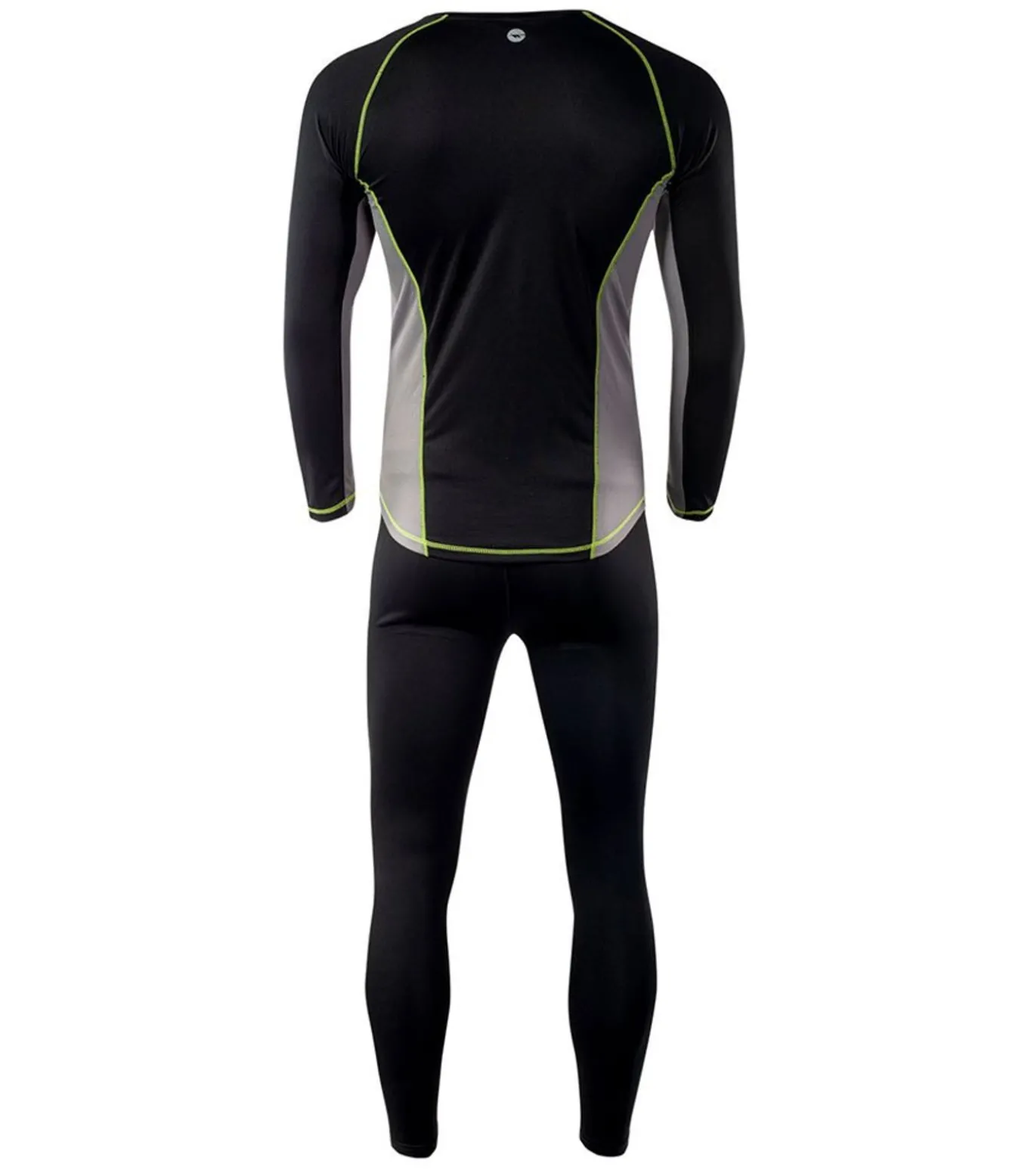 Product Omschrijving: Hi–Tec Heren Kamo Thermische Basislagen De basislagen bestaan uit een top met lange mouwen en een broekje van 100% polyester. Het ontwerp is voorzien van contrasterende panelen en merklogo’s. Beide stukken hebben een treksluiting voor gemakkelijk aan– en uittrekken. De stof is ademend, duurzaam, flexibel, lichtgewicht en sneldrogend. Het maakt gebruik van thermische en naadloze technologieën om lichaamswarmte vast te houden. Contrasterende stiksels zorgen voor esthetische aantrekkingskracht. De broekjes hebben een elastische tailleband voor comfort. Elke set bevat een topje en een broekje samen verpakt in een doos. De basislagen zijn bedoeld om warmte en vochtafvoerende eigenschappen te bieden voor actief buitengebruik.